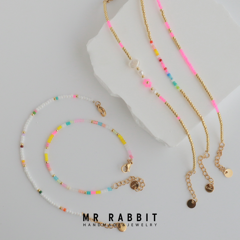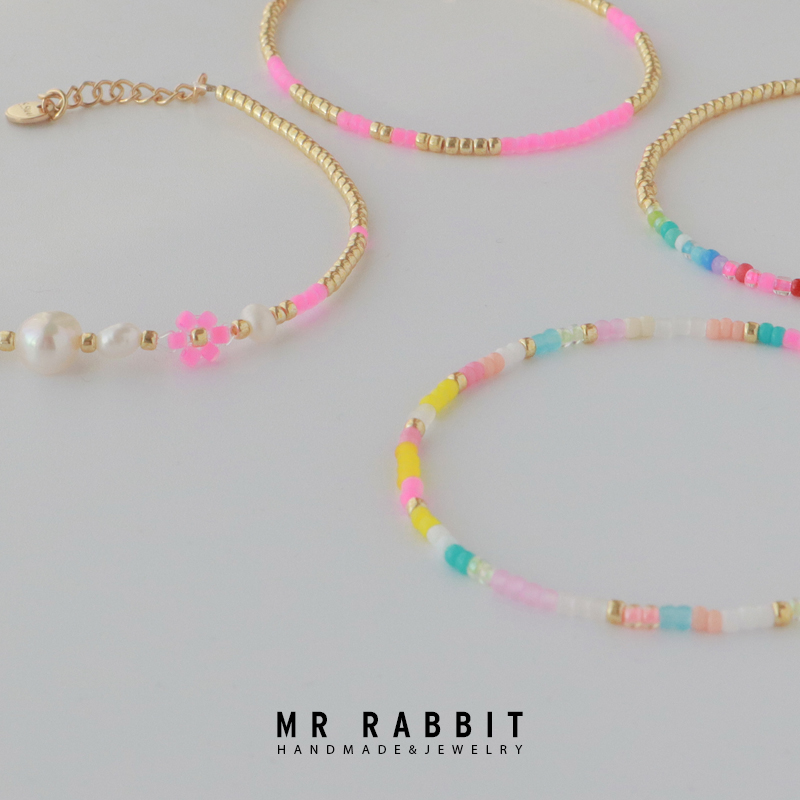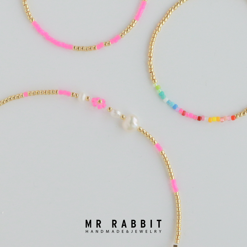 MR RABBIT荧光粉金色米珠糖果色多巴胺手链夏日百搭桃花气质手饰