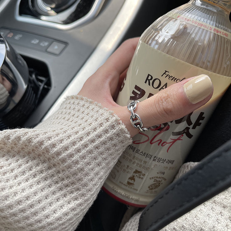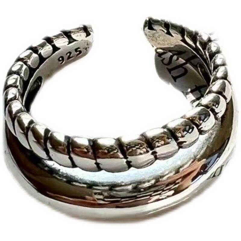 2025新款纯银韩博主款做旧质感猪鼻子双层光面麻花加厚ins戒指简