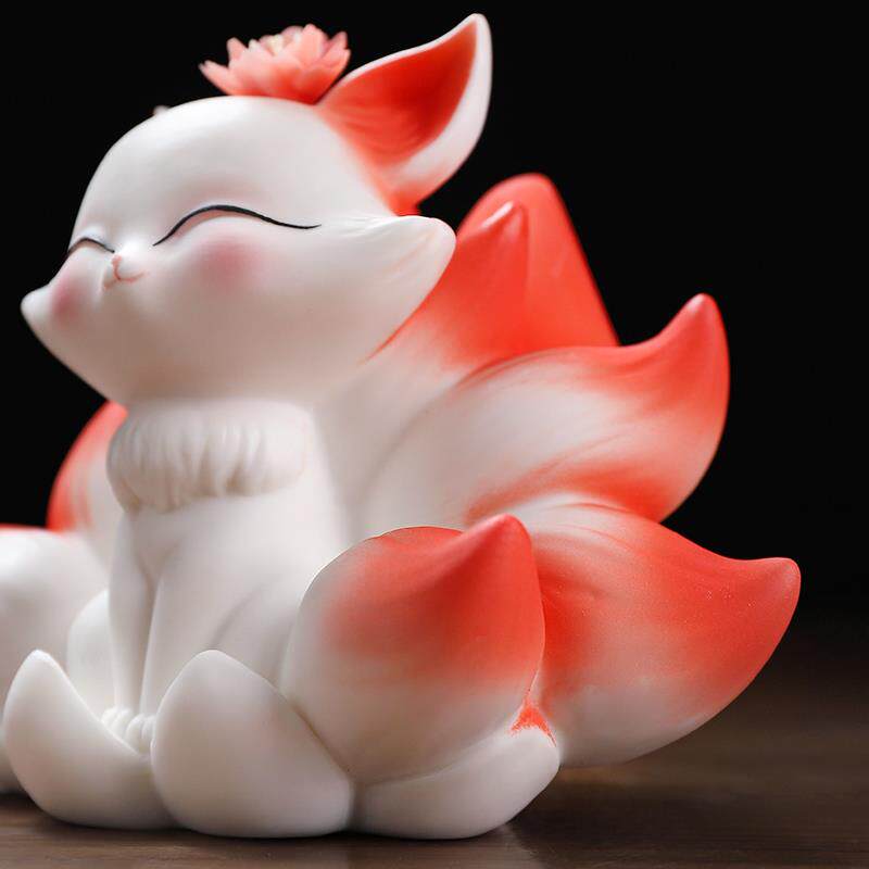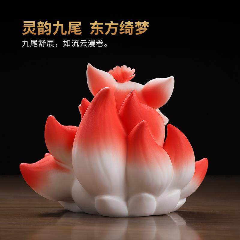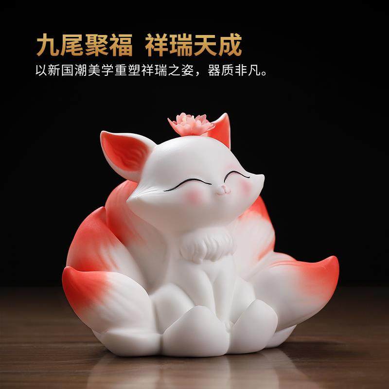 东方泥土 陶瓷九尾狐小摆件家居办公室桌面车载小狐狸装饰工艺礼