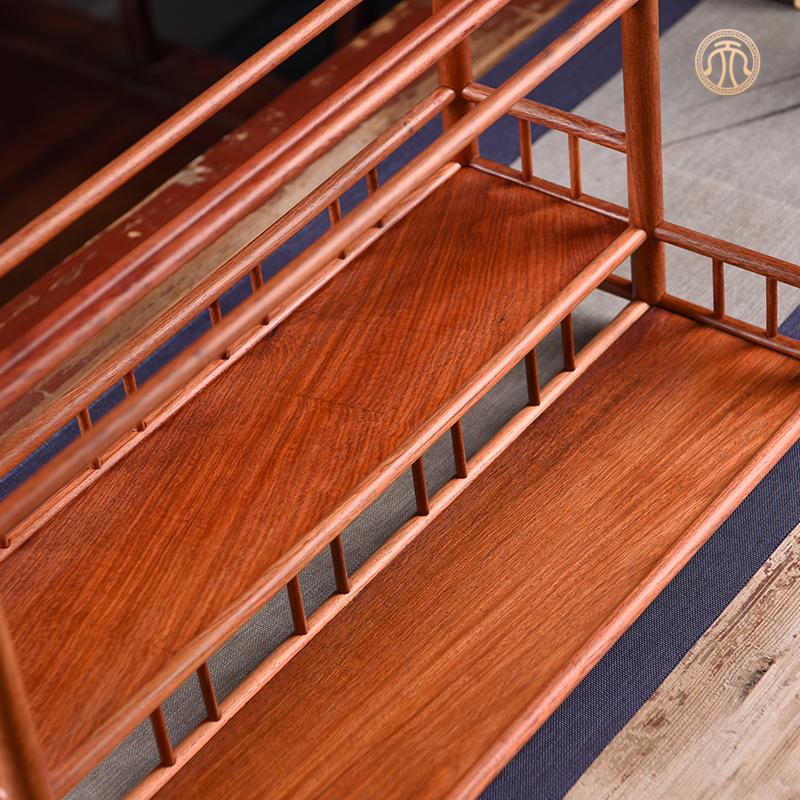缅甸花梨双层沥水架红木客厅办公家用茶水架实木中式茶桌收纳杯架