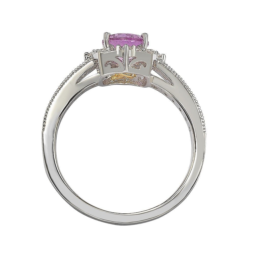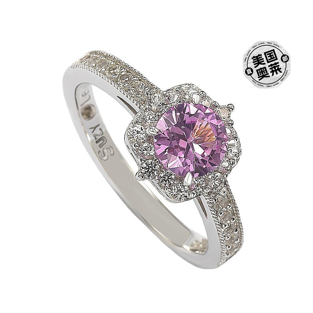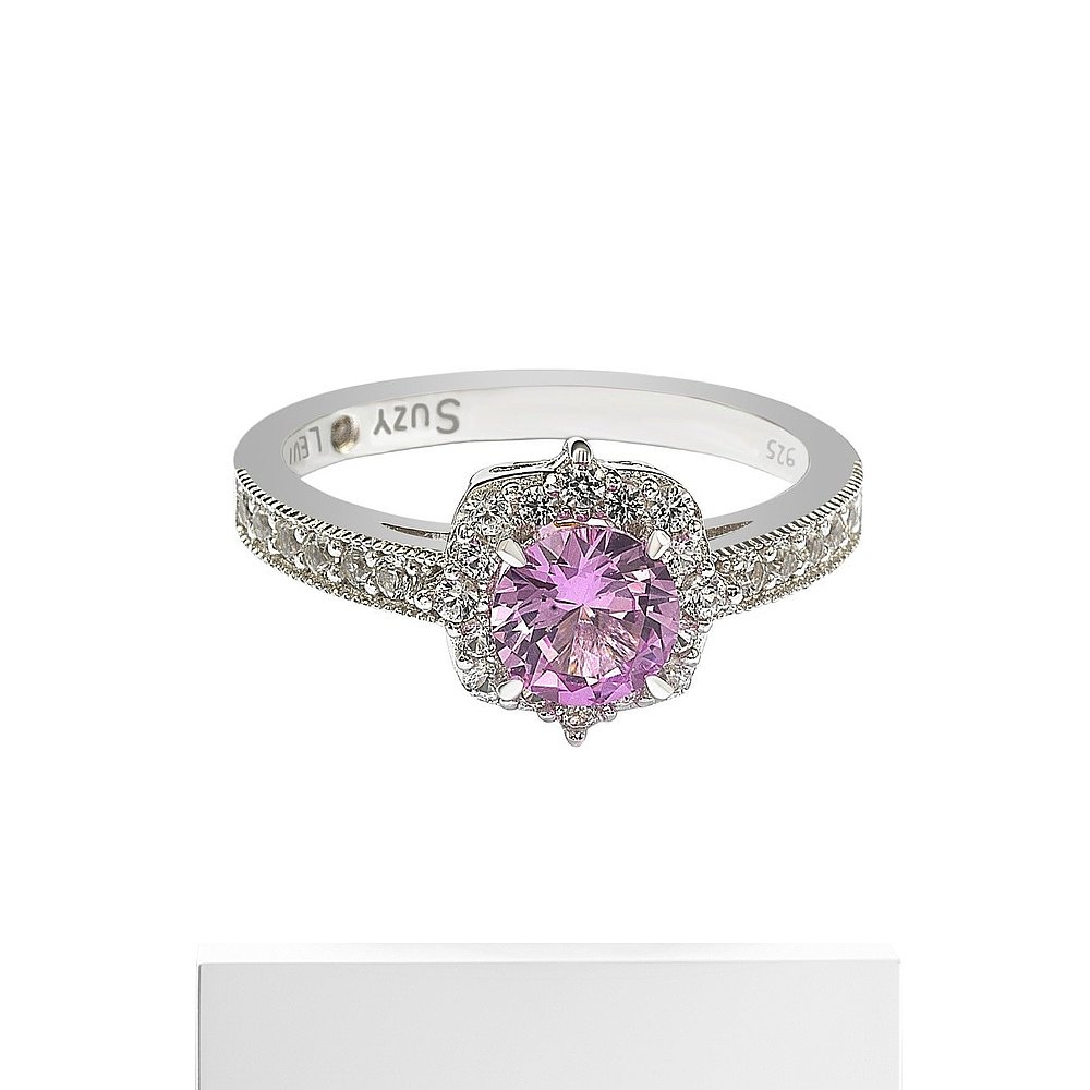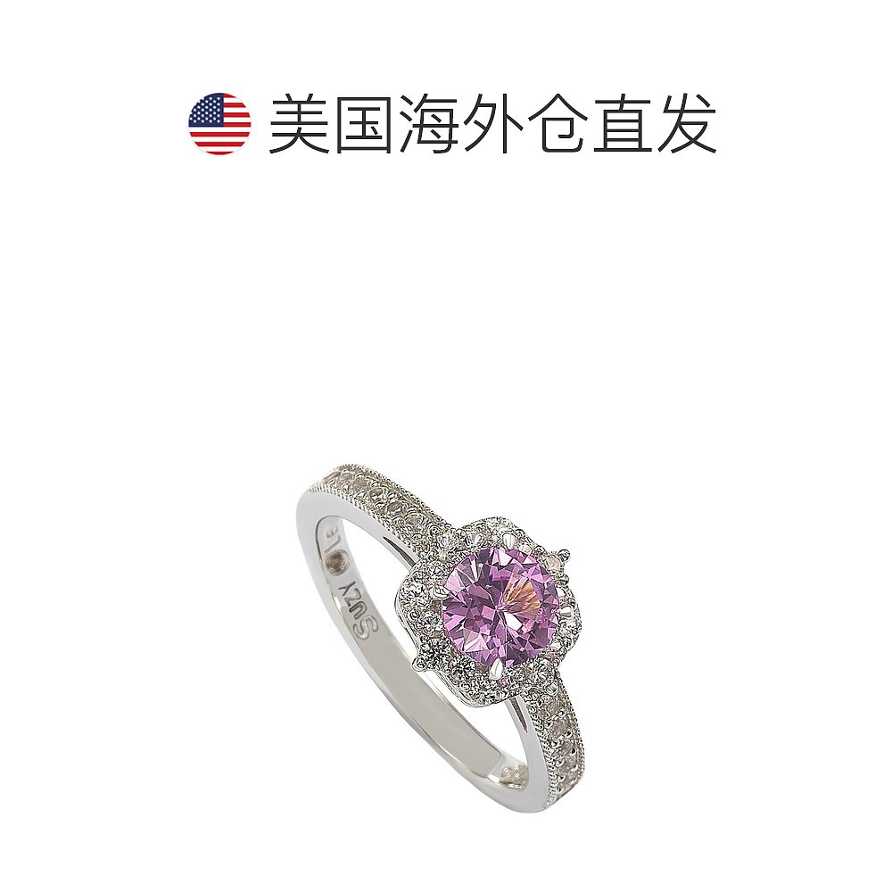 自营 Suzy Levian 纯银粉色蓝宝石和钻石装饰中心石戒指 - 粉色