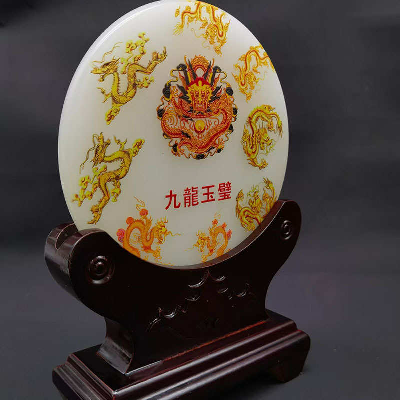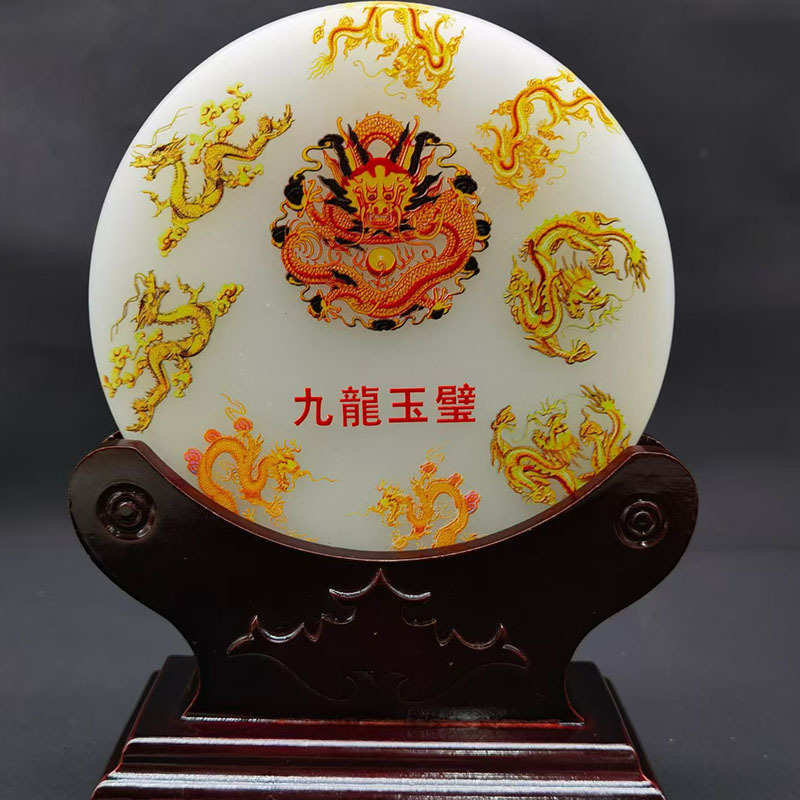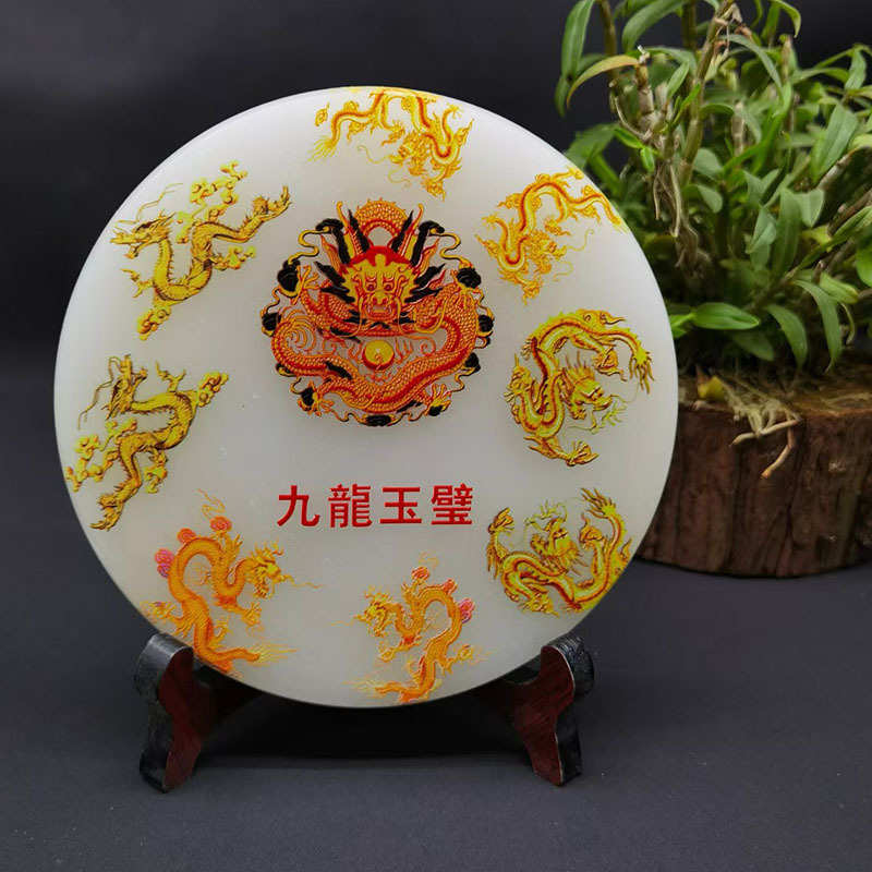 各种九龙图案玉石摆件玉厂家可选18cm玉璧阿富汗扣玉器玉摆件批发