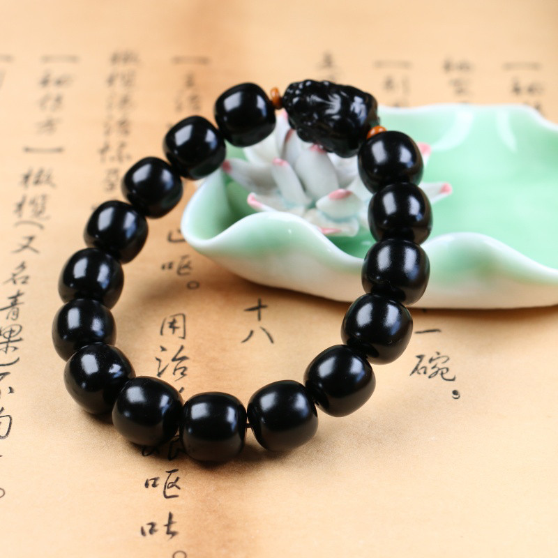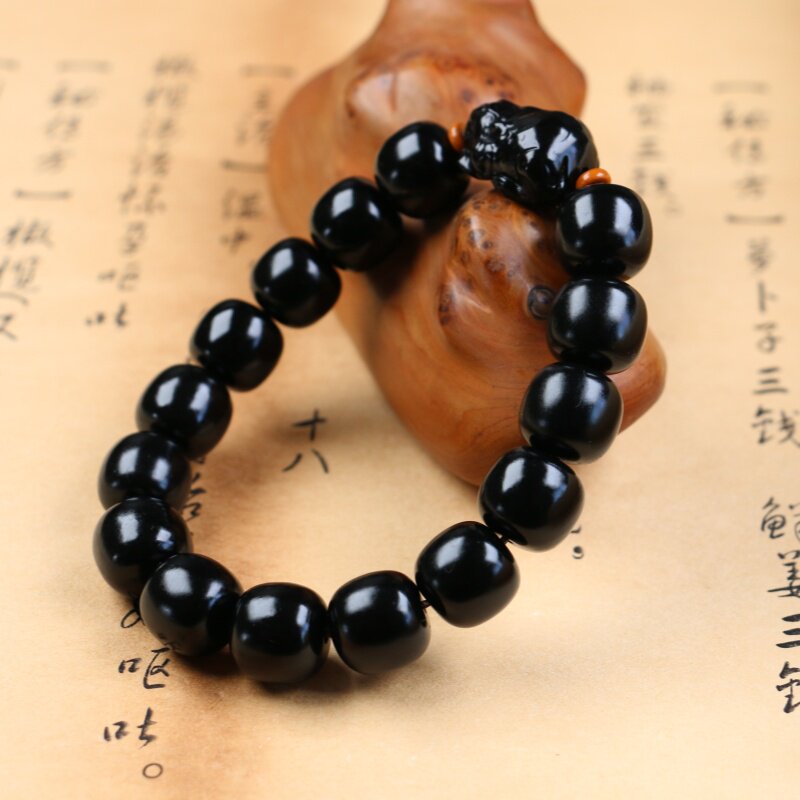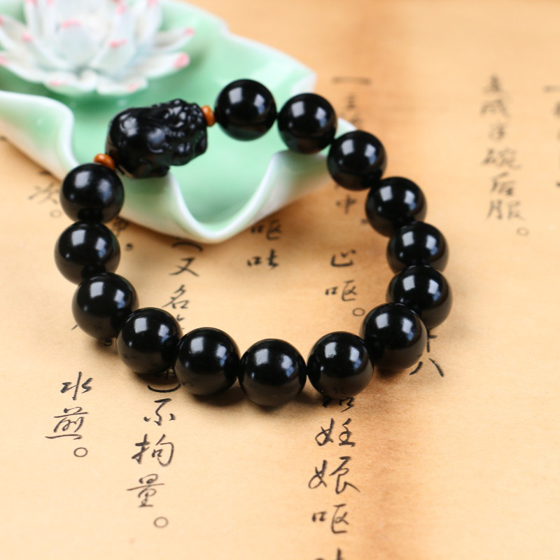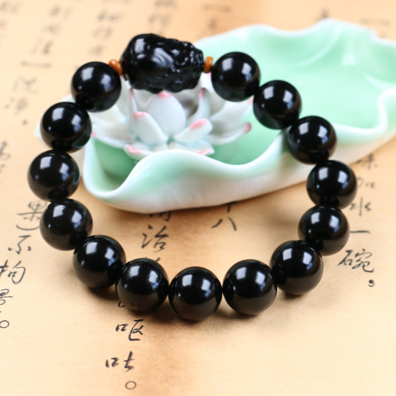 天然新疆和田玉黑羊脂墨玉老型珠圆珠貔貅手串男女款招财手链证书