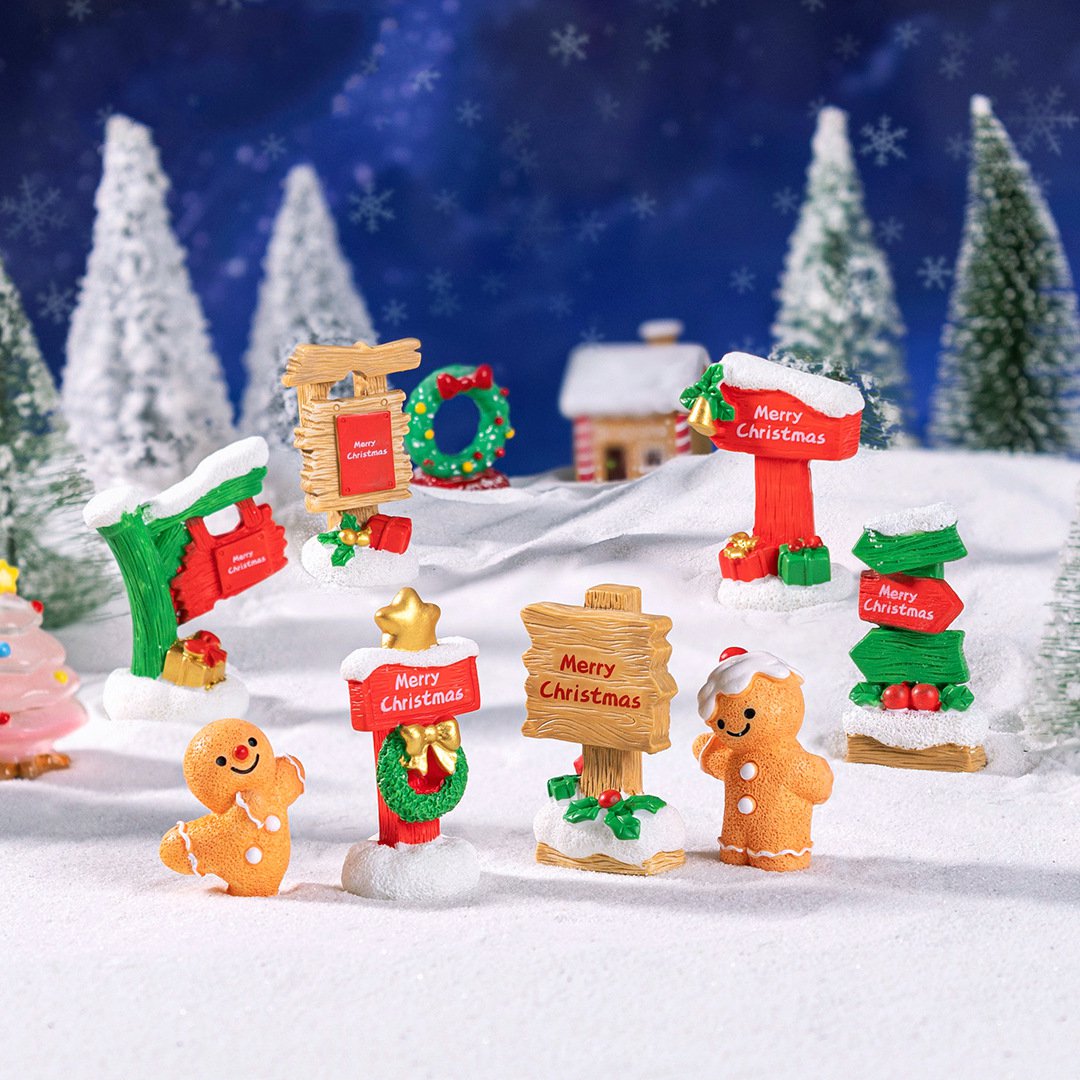 微景观创意圣诞节路牌指示牌 水晶球多肉花盆桌面装饰迷你小摆件