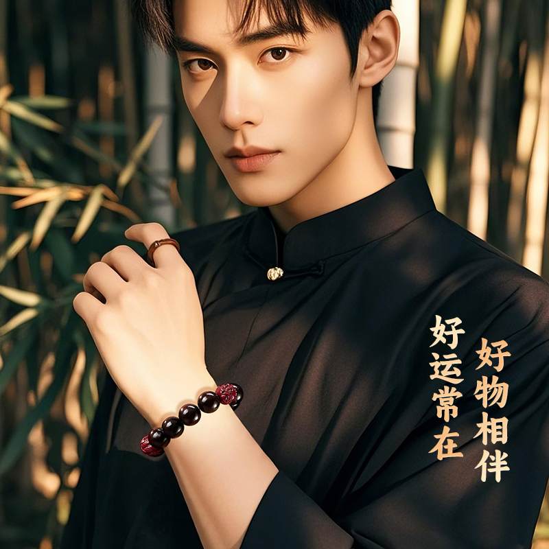 小叶紫檀手串男士朱砂三合生肖六合文玩转运佛珠檀香木质手链真品
