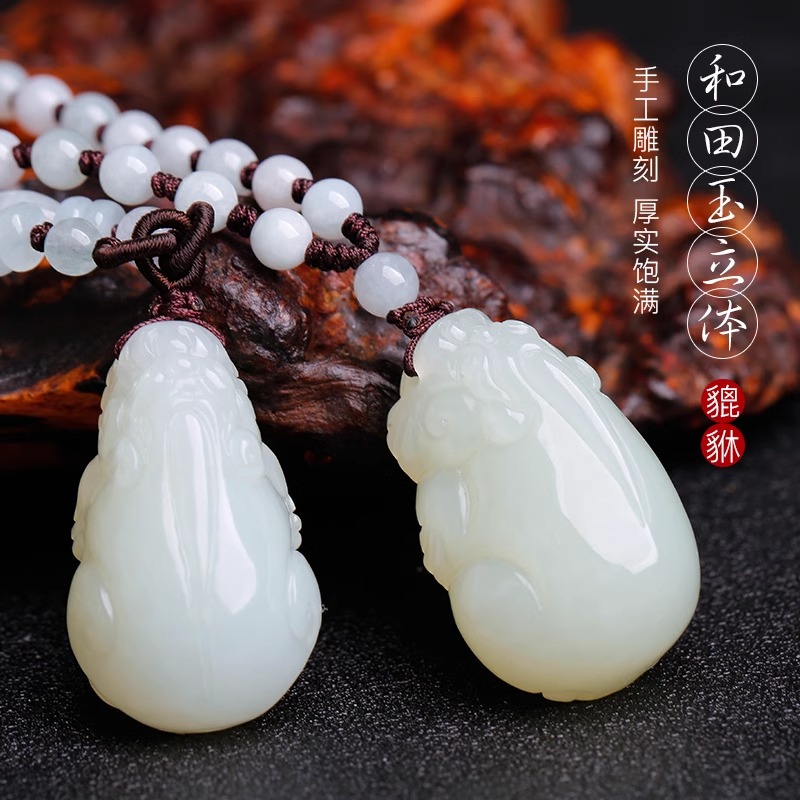 和田玉貔貅吊坠男士霸王皮丘情侣挂件白玉玉坠玉石项链女饰品礼物