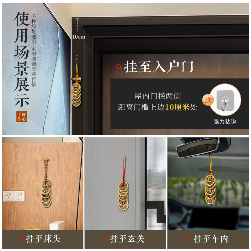 加厚黄铜五帝钱铜葫芦门对门挂件家居吊饰客厅入户门车挂饰钥匙扣