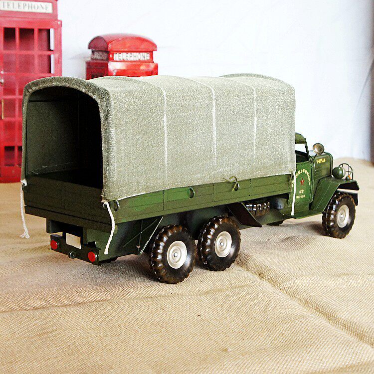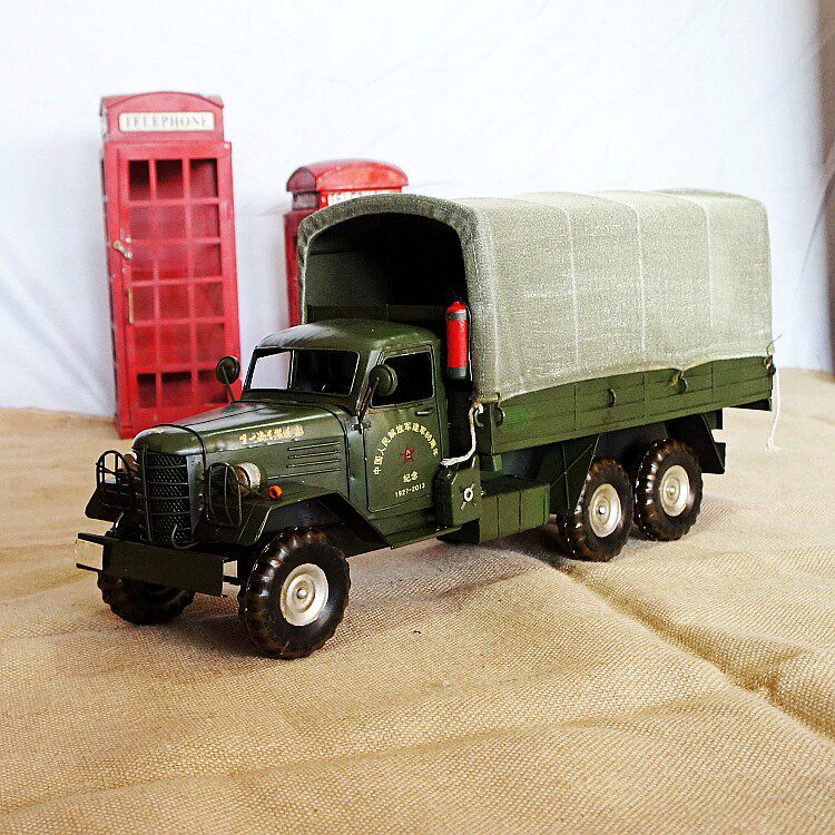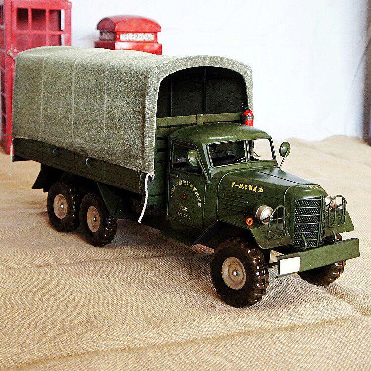 中国老式解放卡车模型 复古铁皮仿真老爷车 家居橱窗收藏军车摆件