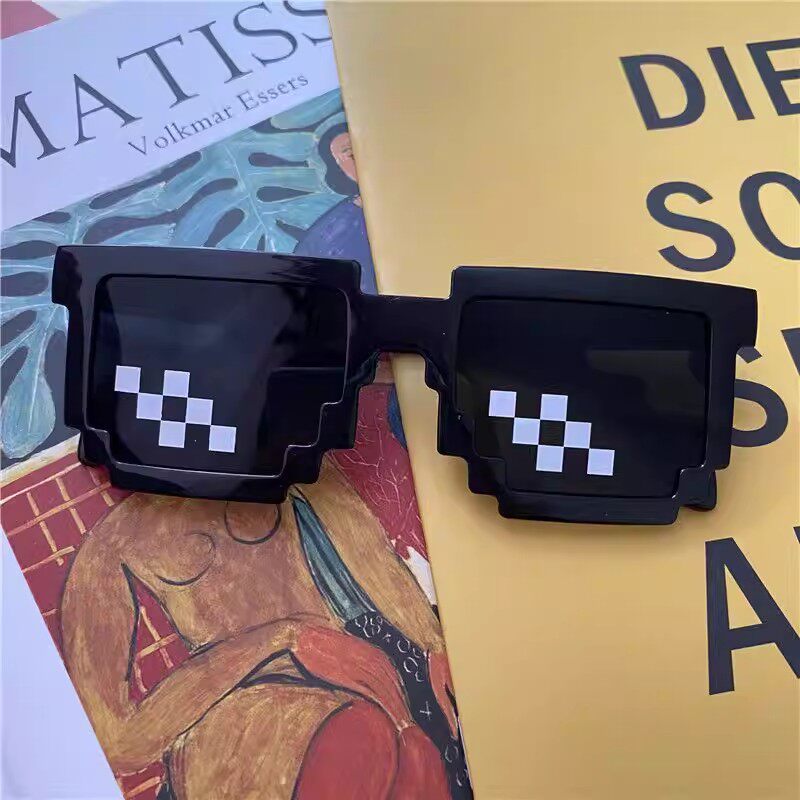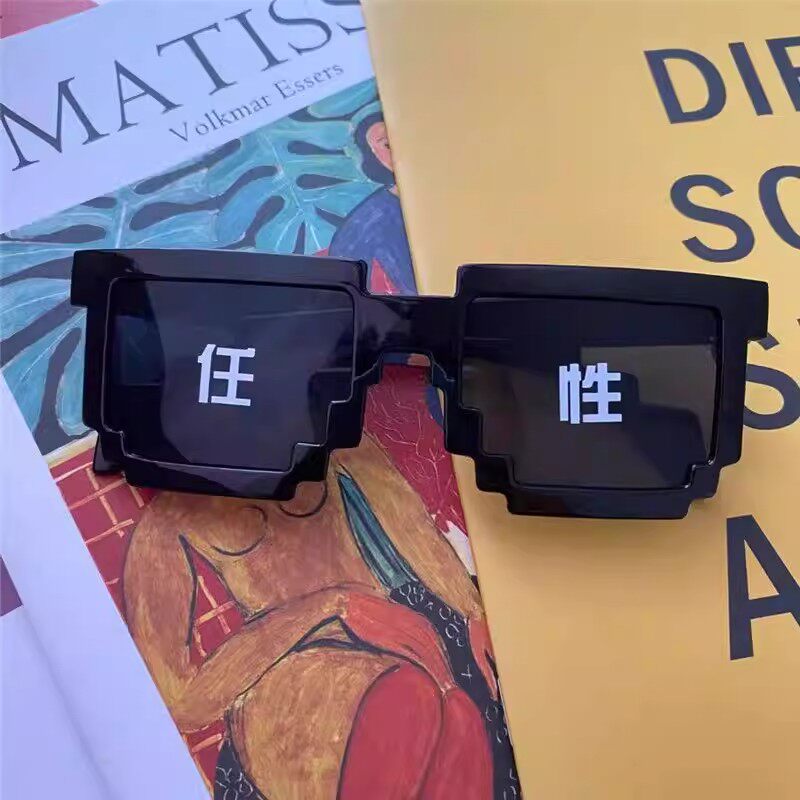 马赛克眼镜拍照道具接亲伴郎恶搞像素墨镜年聚会气氛红色黑色变色