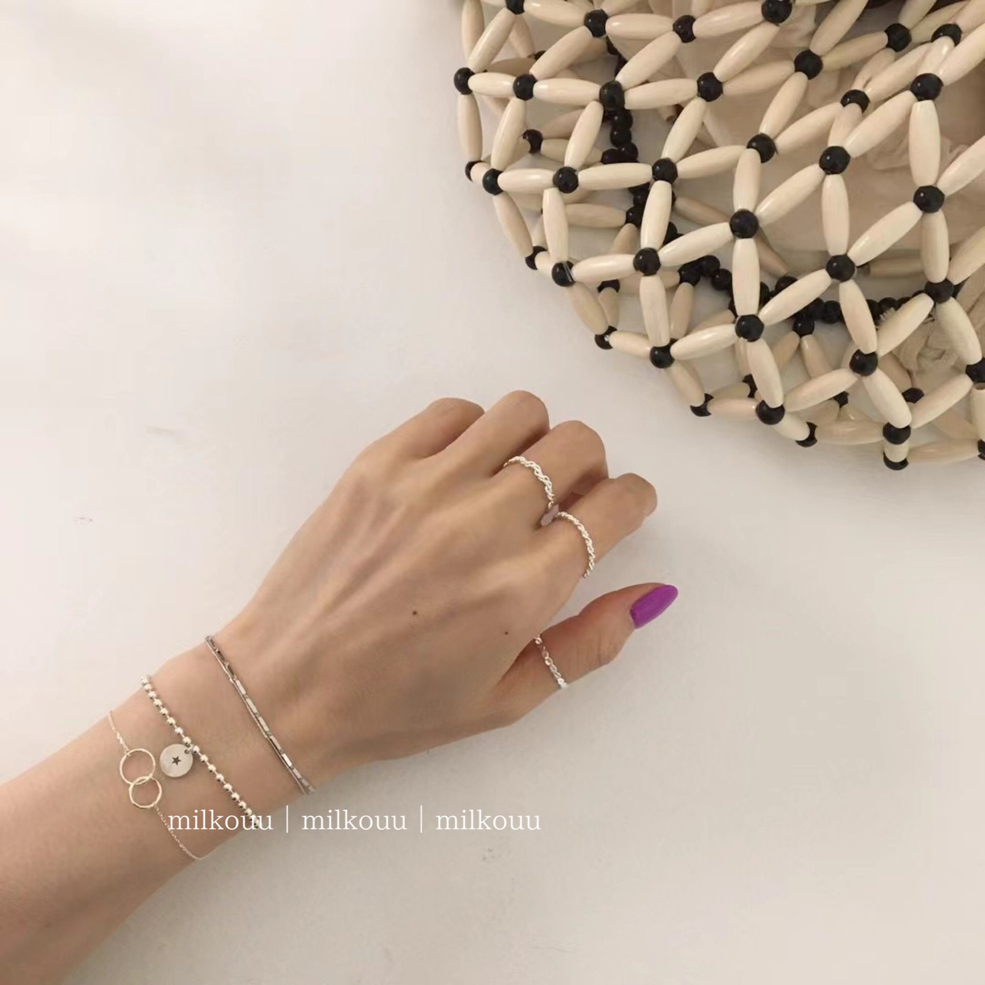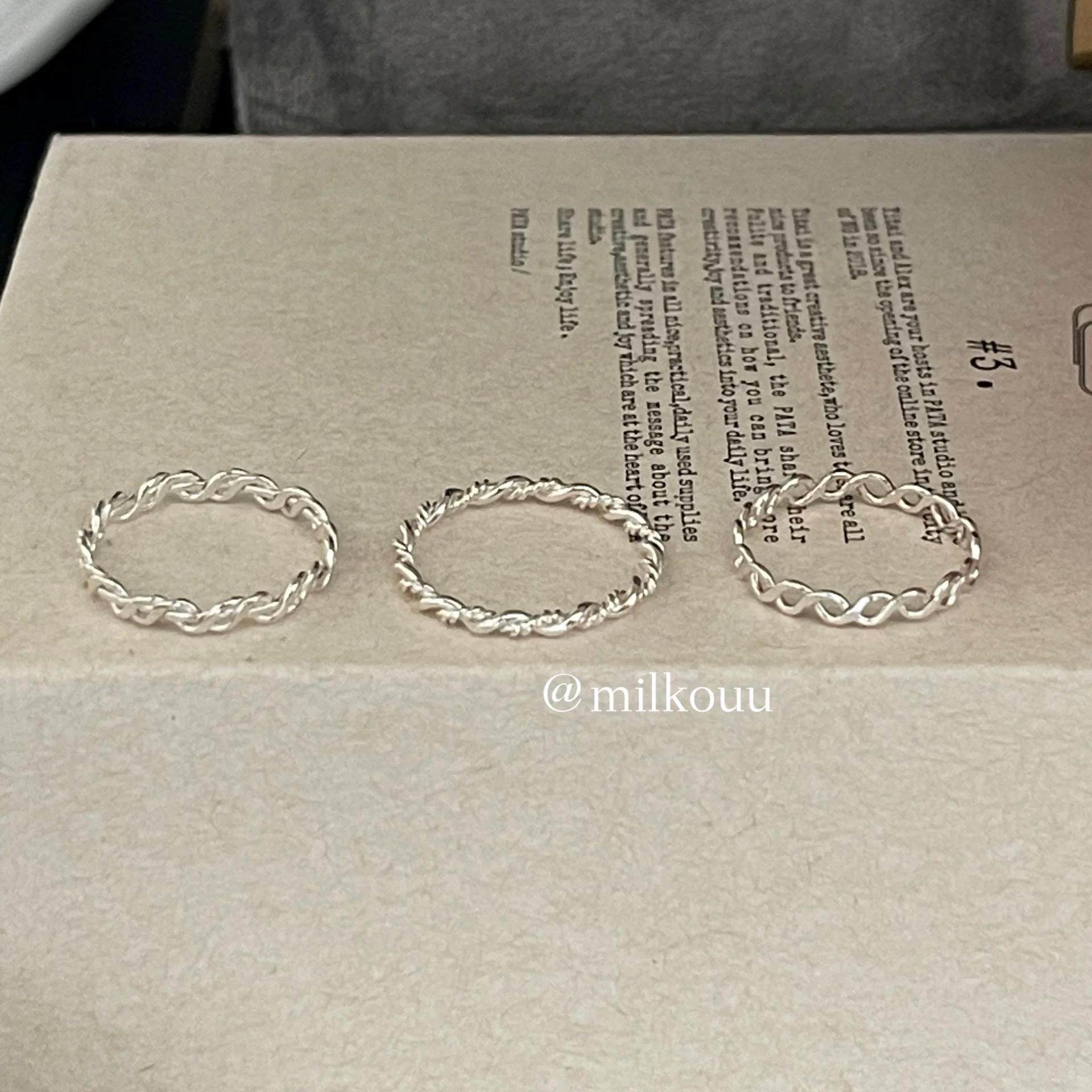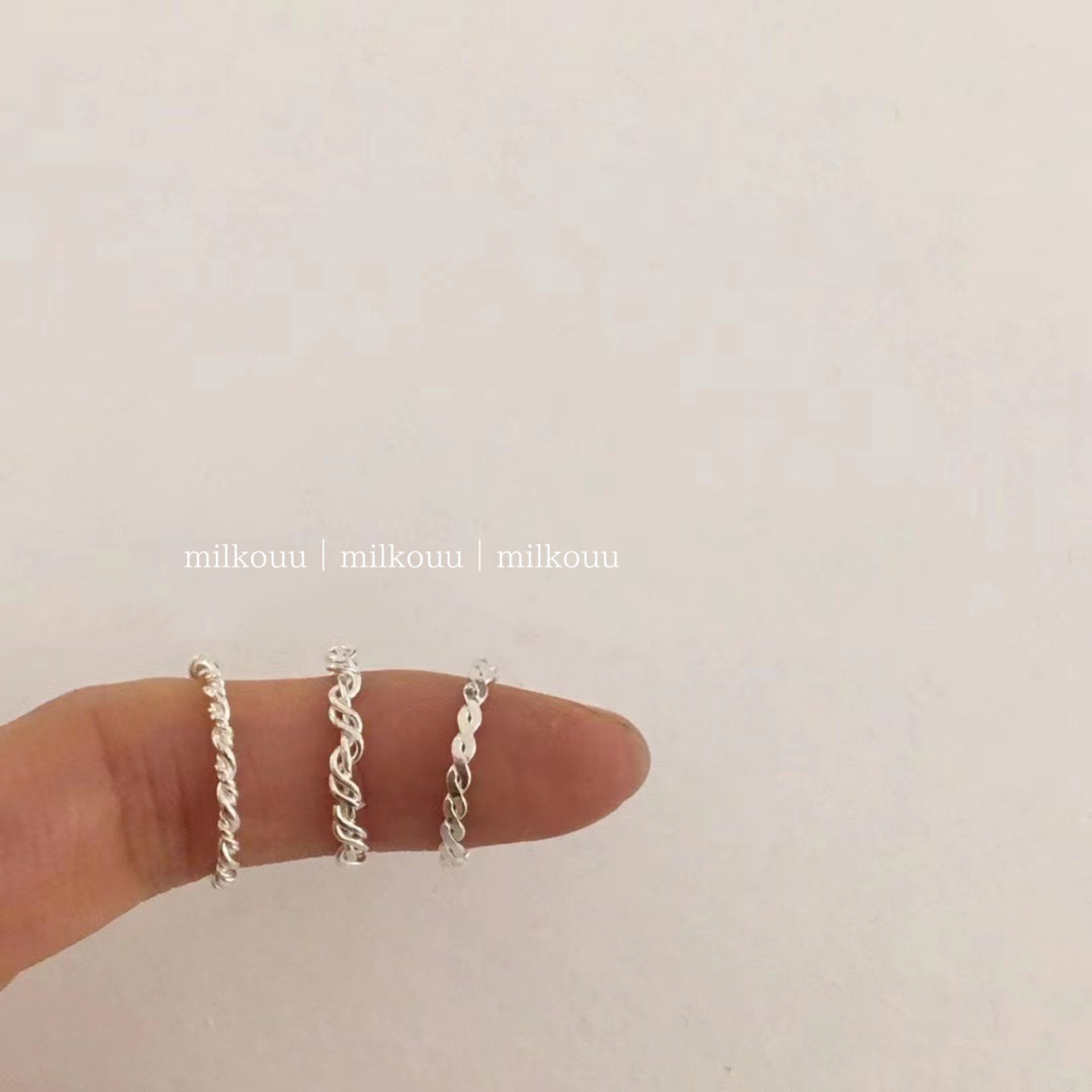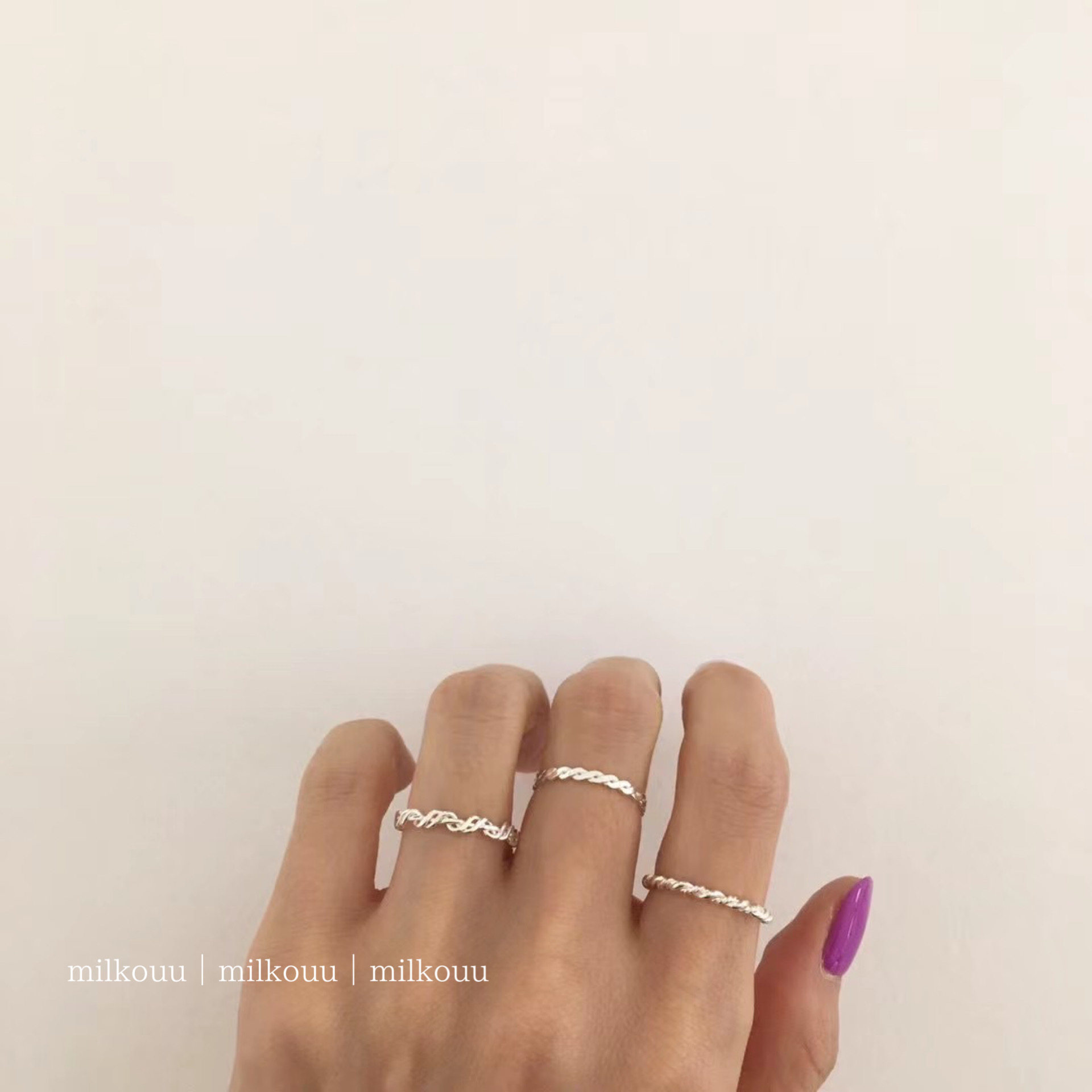 韩国代购 s925通体纯银 气质简约百搭叠戴麻花缠绕素圈细戒指尾戒