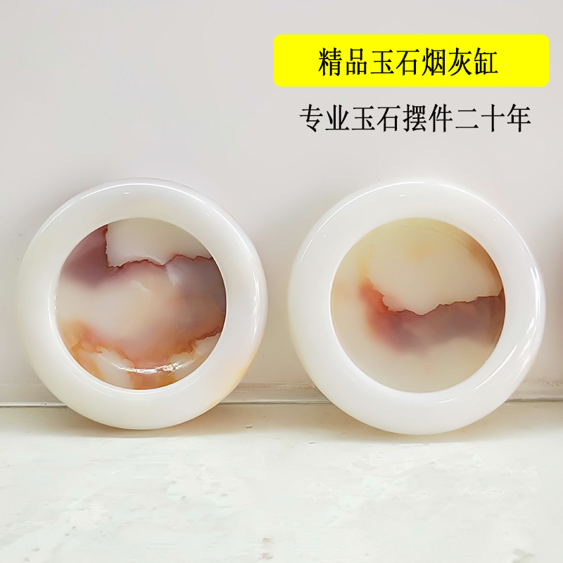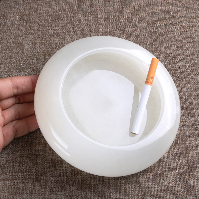 天然玉石烟灰缸高档圆形大理石材创意大号中欧式居家工艺礼品摆件