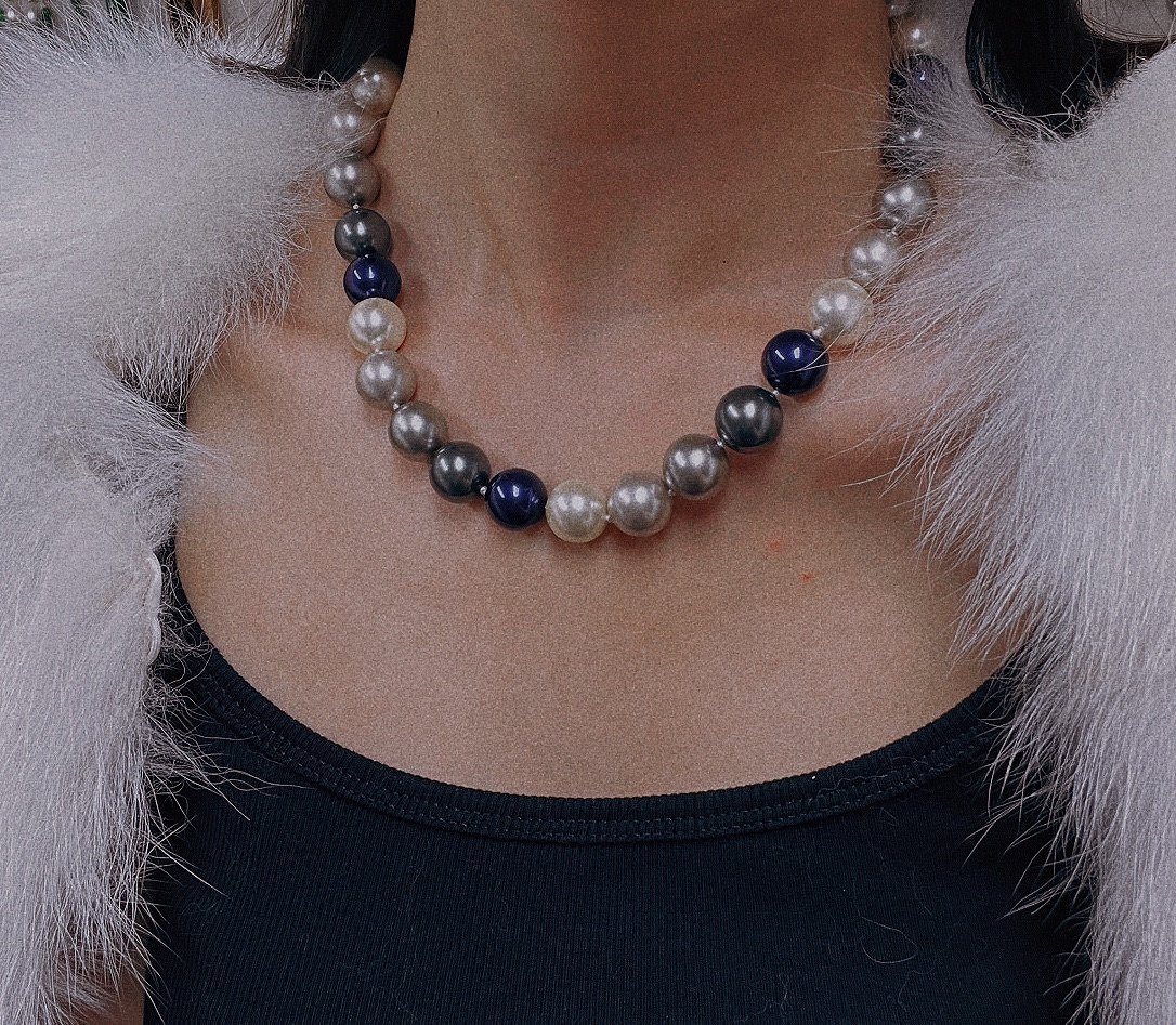 独家定制版14mm莫兰迪蓝色系贝珠珍珠项链女时尚小众大颗粒倪妮款