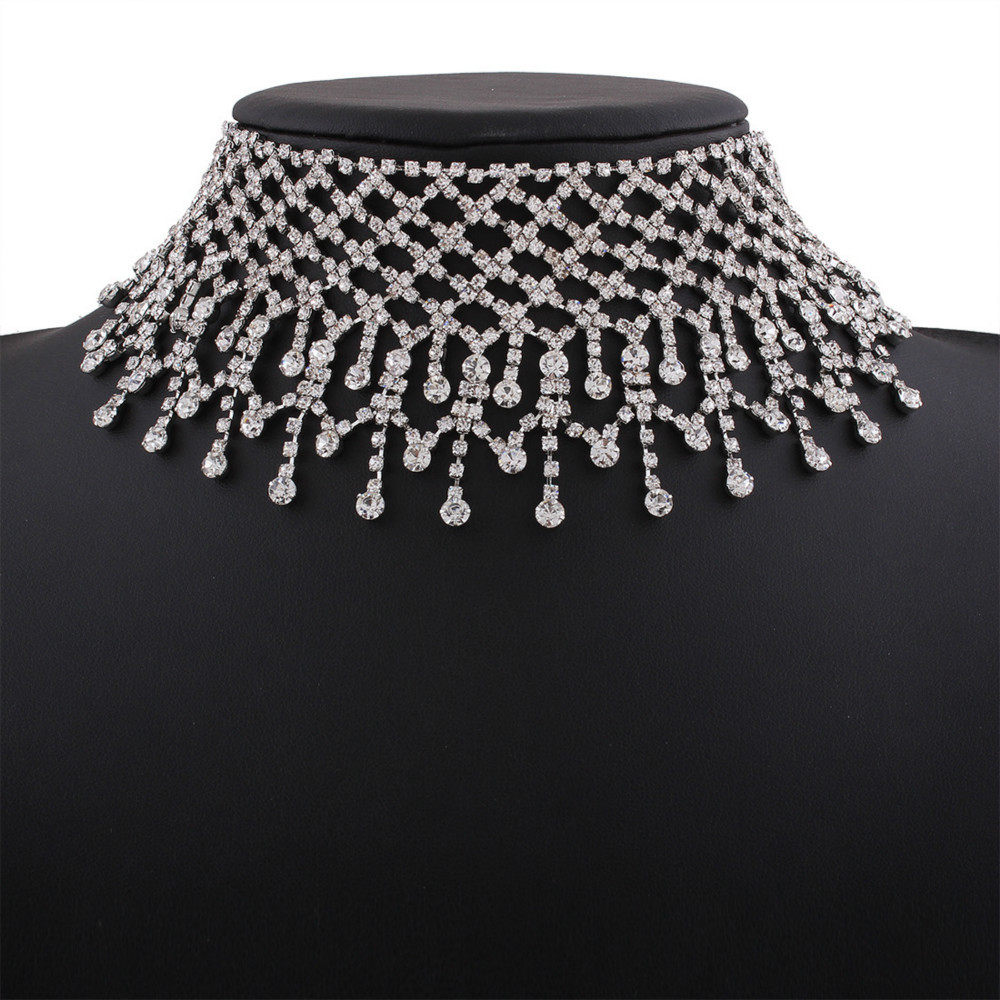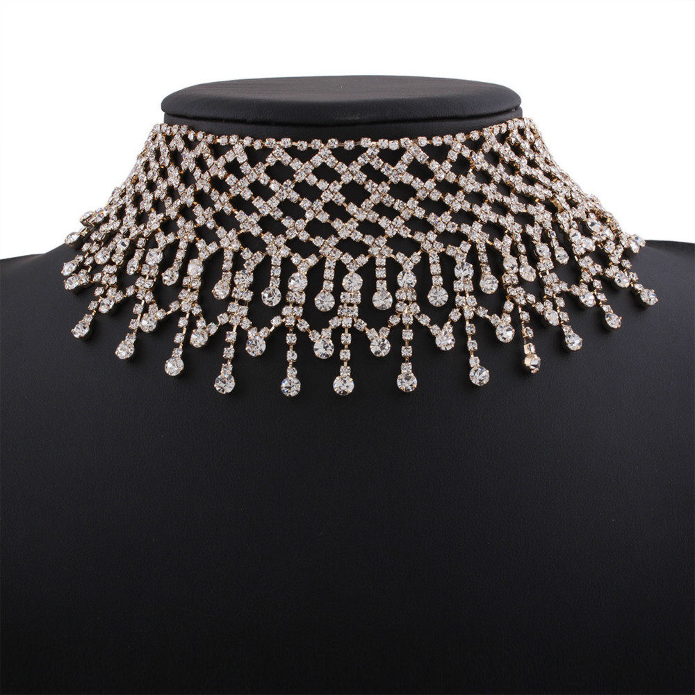 欧美夸张水滴镶钻流苏颈链高端宴会派对新娘项链锁骨链necklace