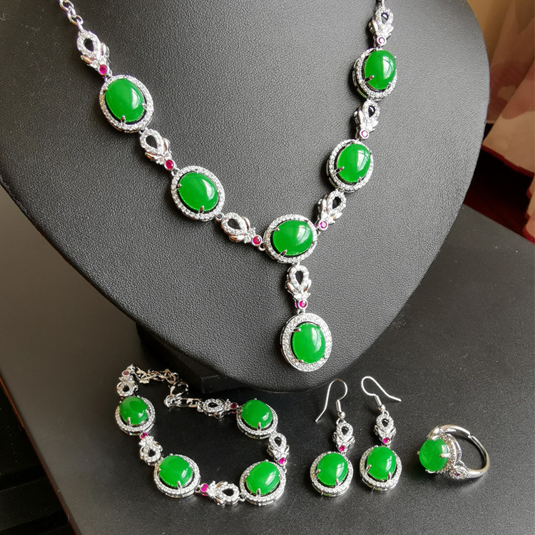 【胡二翡翠】原创设计套装项链天然玉石绿色新娘结婚礼品礼物首饰