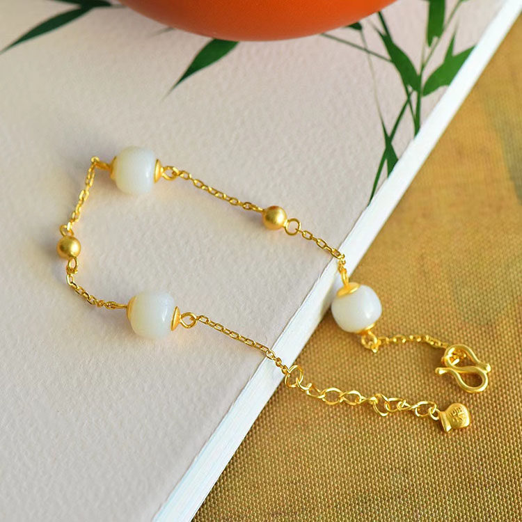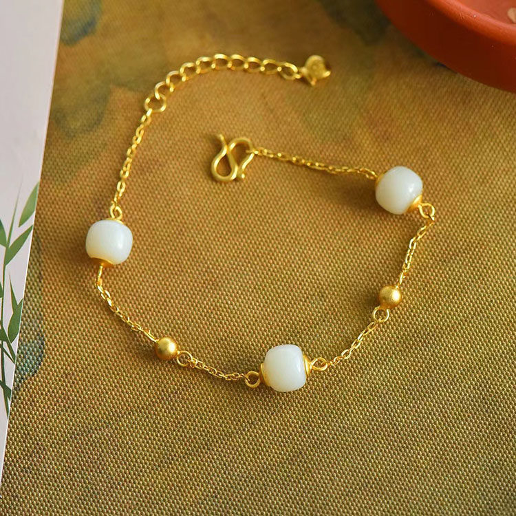 天然S925银镶和田玉细料老型柱手链新款礼物饰品正品明星网红古风