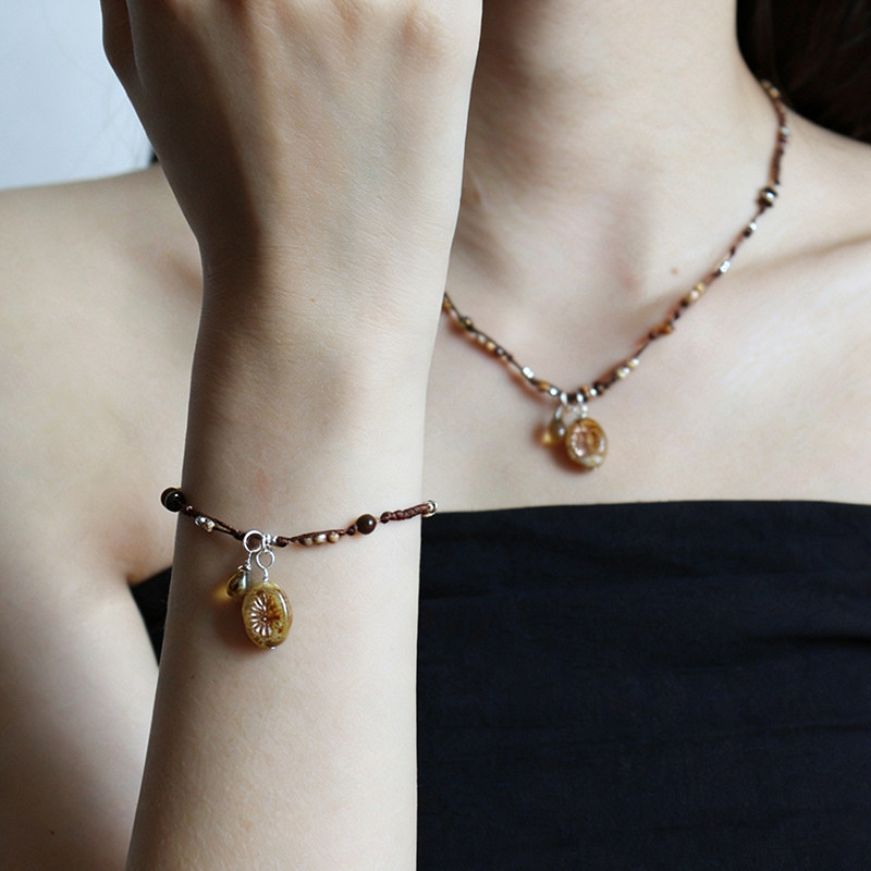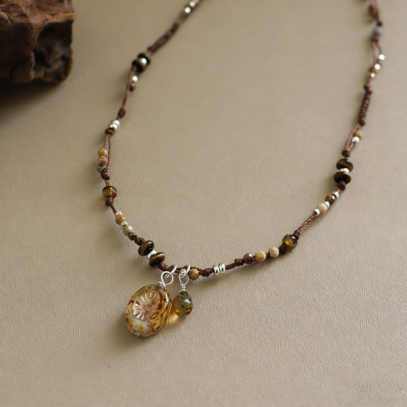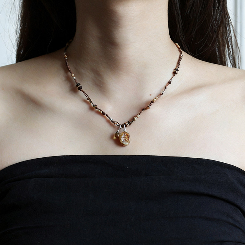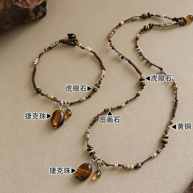 新款时尚复古民族风精致捷克珠玛瑙项链轻奢小众高级感编绳锁骨链