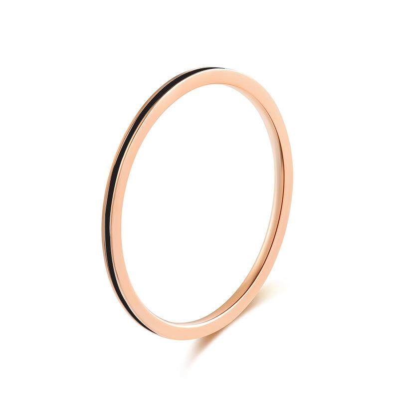 配饰简约极细黑白红色滴胶滴油钛钢戒指 玫瑰金情侣对戒