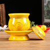 家用黄色陶瓷套装道字三清供佛果盘堂前供水杯家用供盘香炉供花瓶