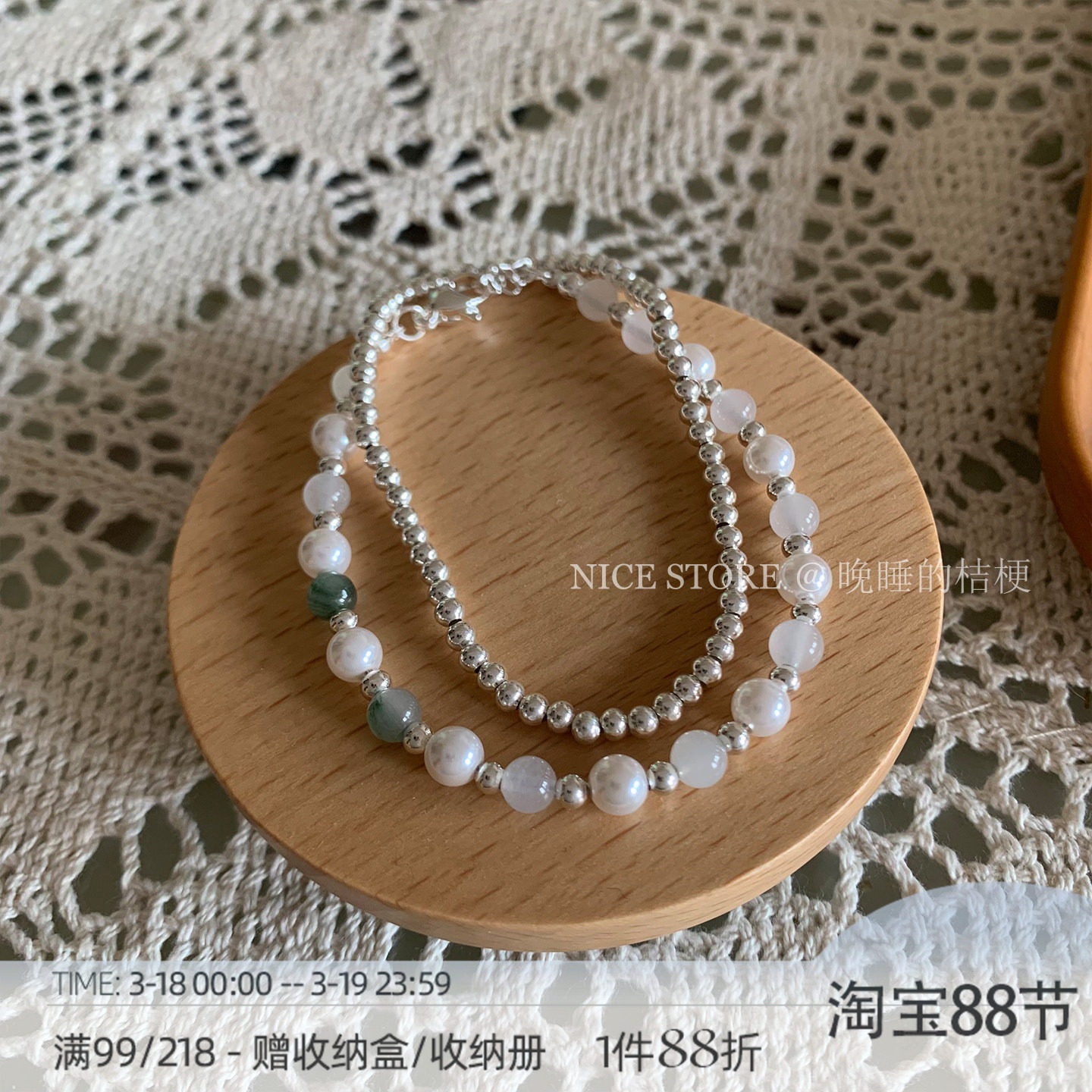 售完无补「一枕银霜」中式串珠拼接双层手串珍珠银珠百搭女手链