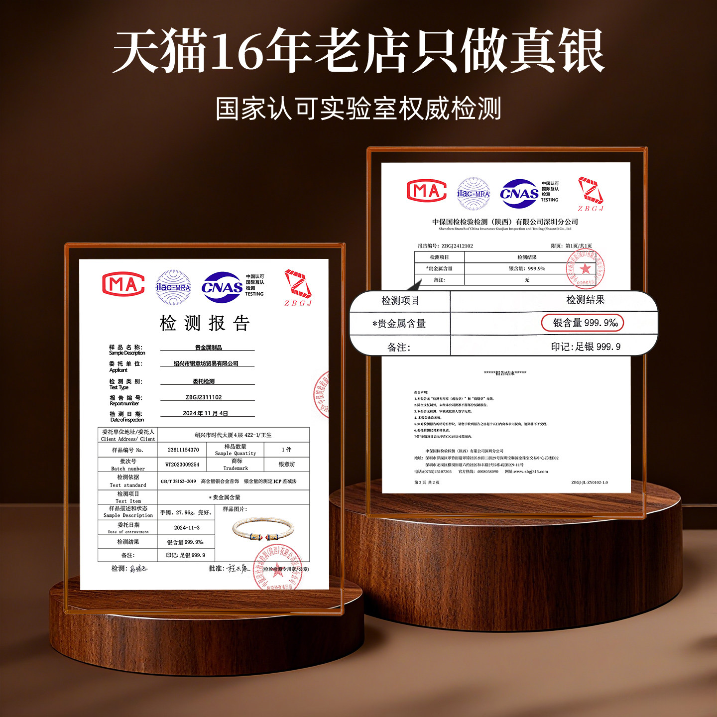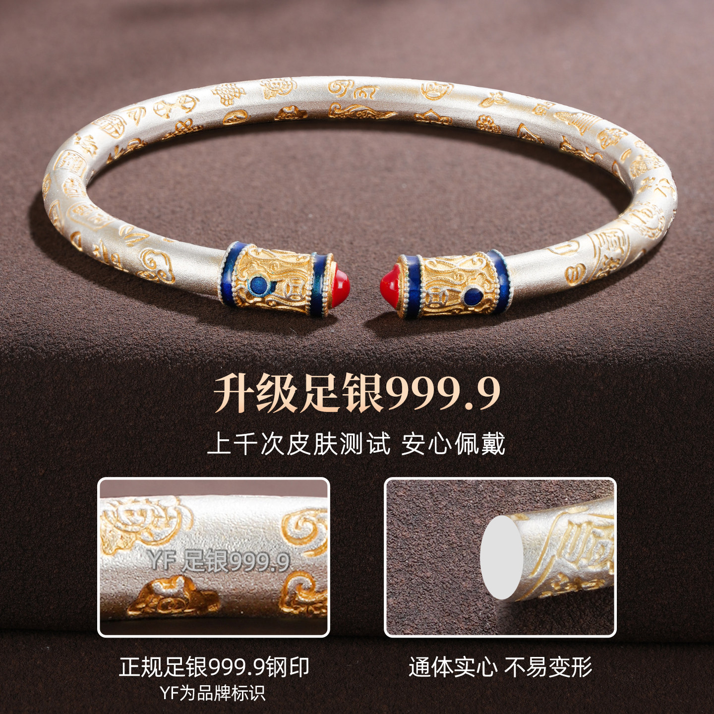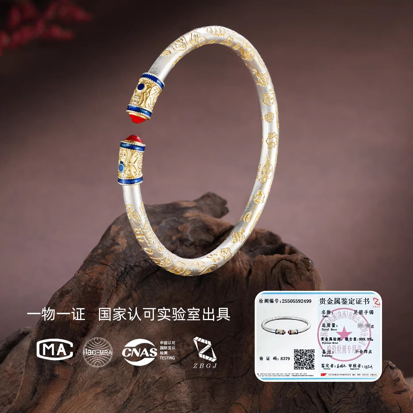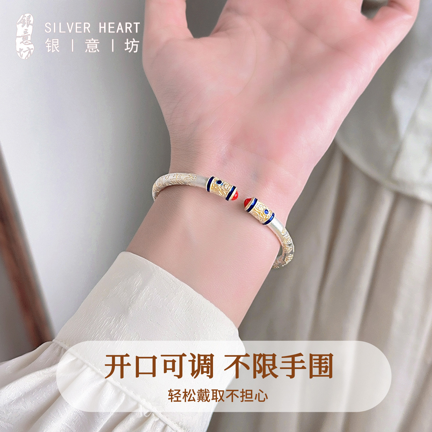 吉言银手镯女款9999纯银2026新款珐琅彩国风银镯子三八妇女节礼物