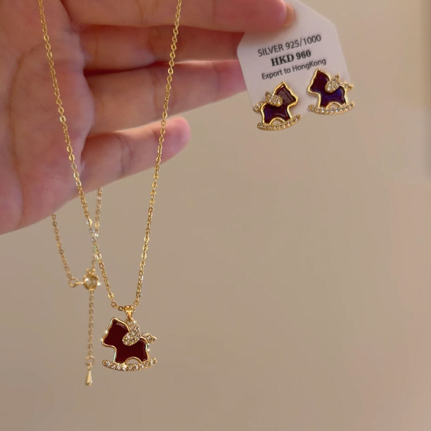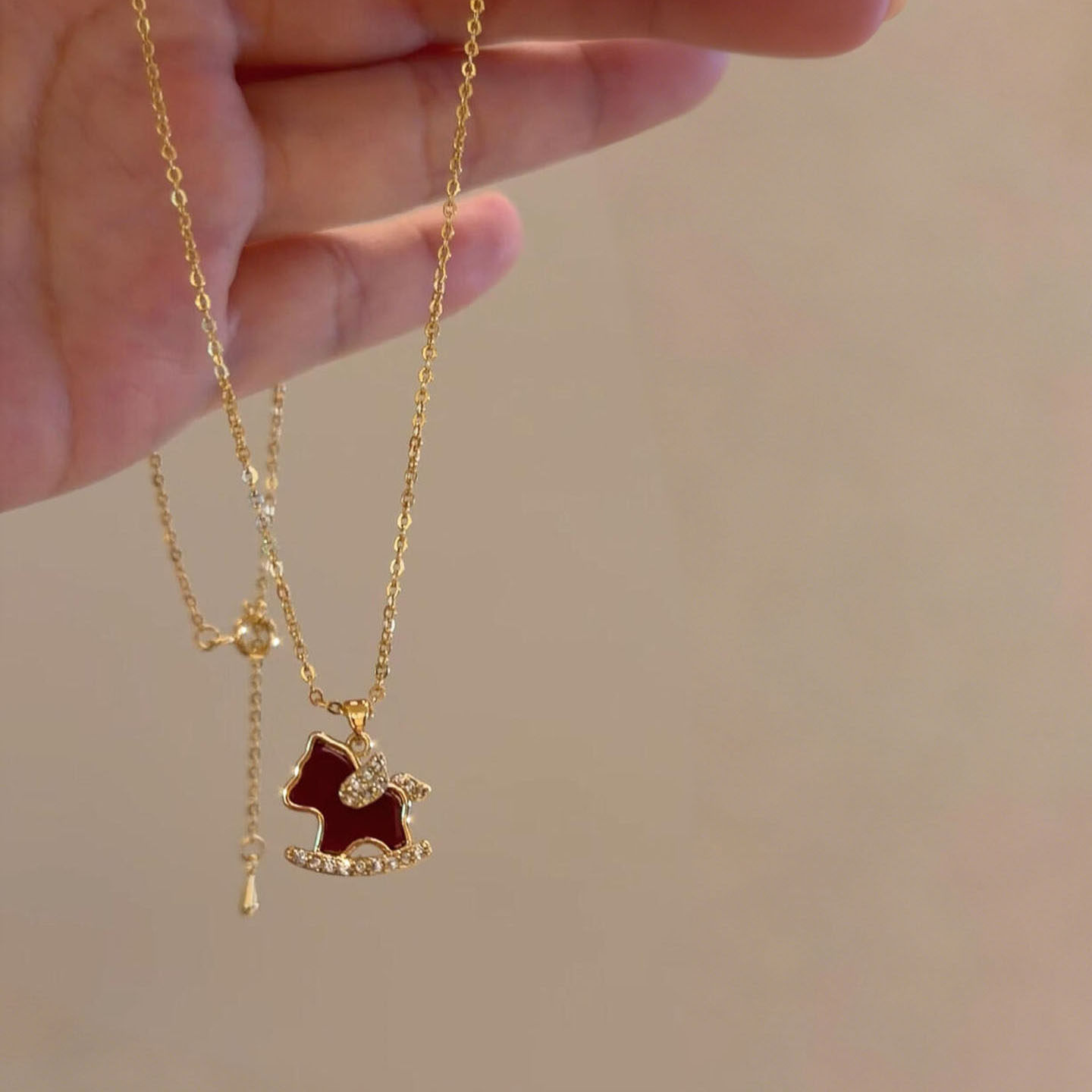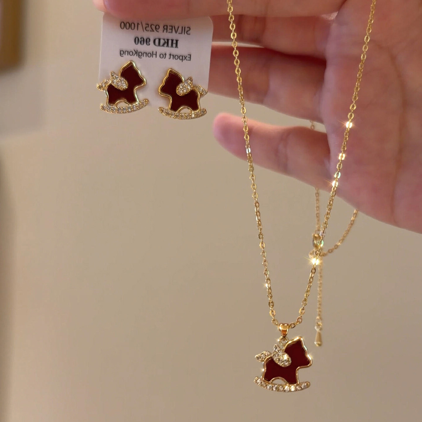 复古红色滴油小马吊坠项链耳钉套装女2026本命年生肖属马新年礼物