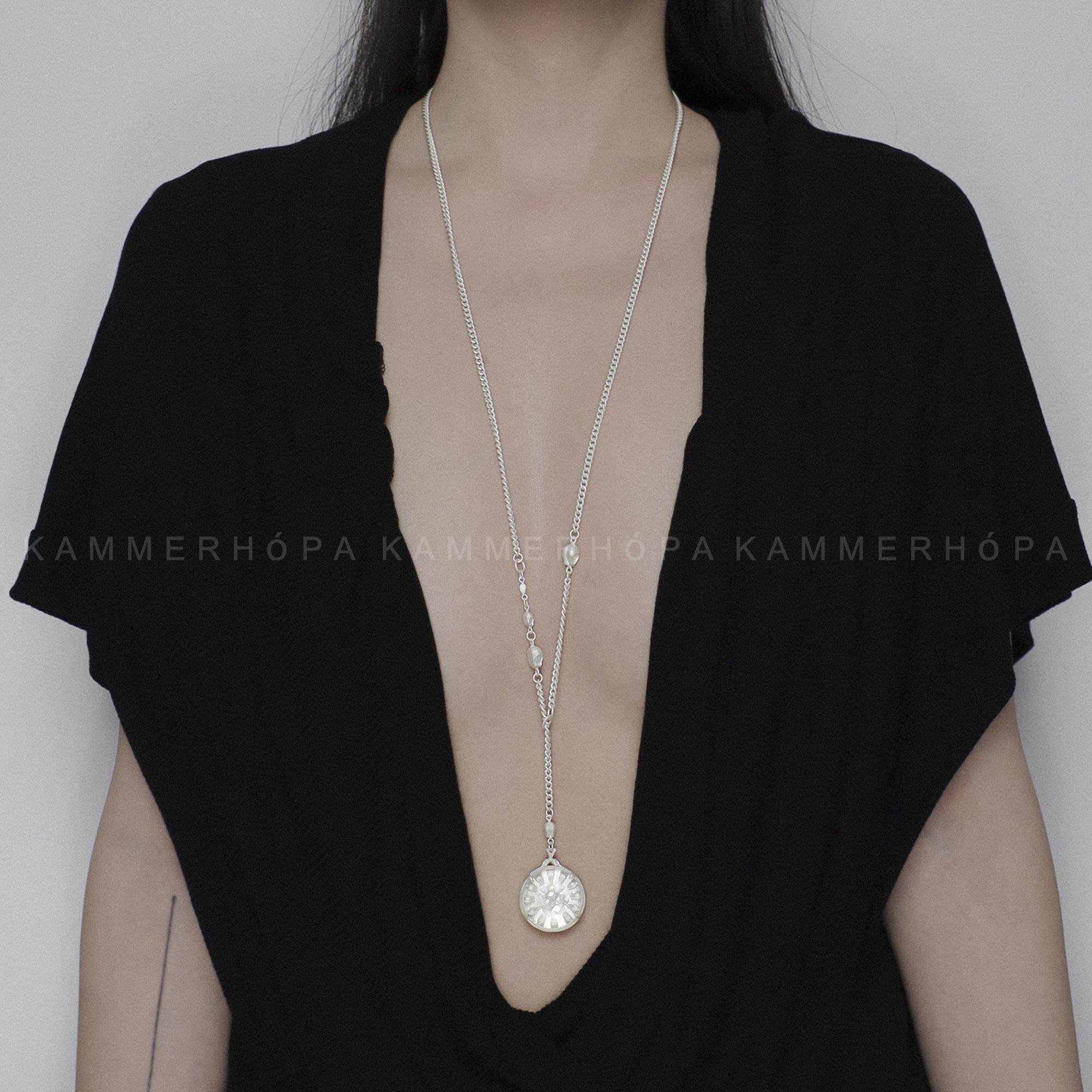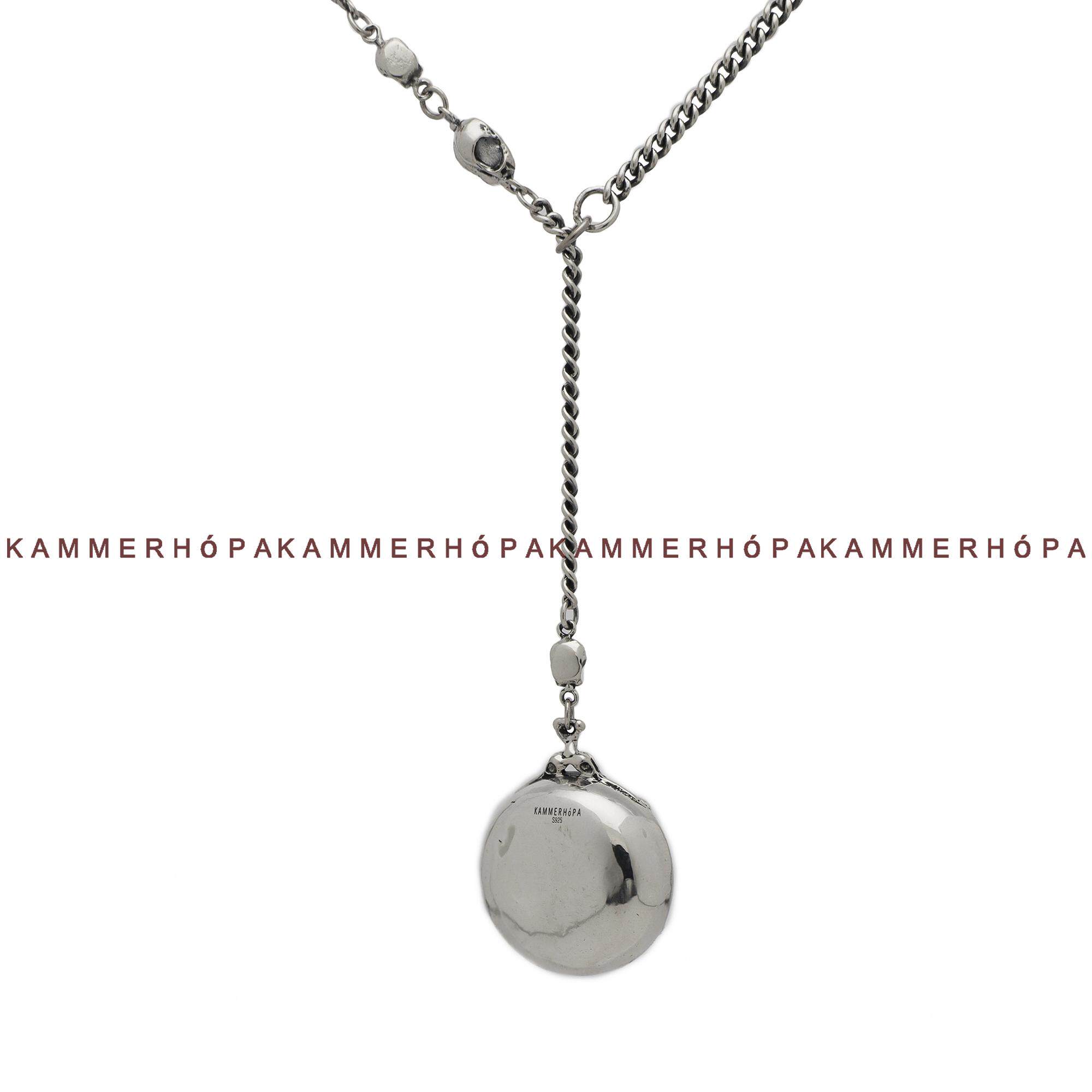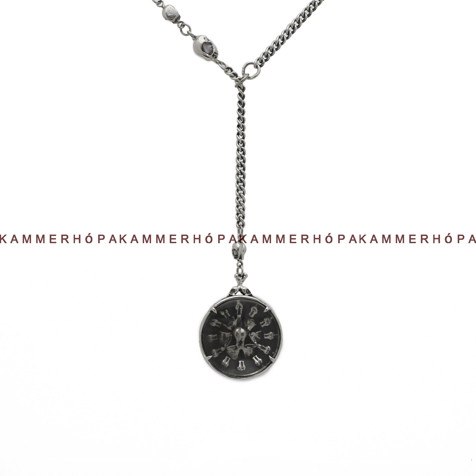kammerhopa 925银骷髅拼骨骼怀表造型镶嵌圆形水晶项坠中性项链新