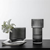 竖条纹烟灰色创意宽口直筒设计师厚底花器家居装摆件透明玻璃花瓶