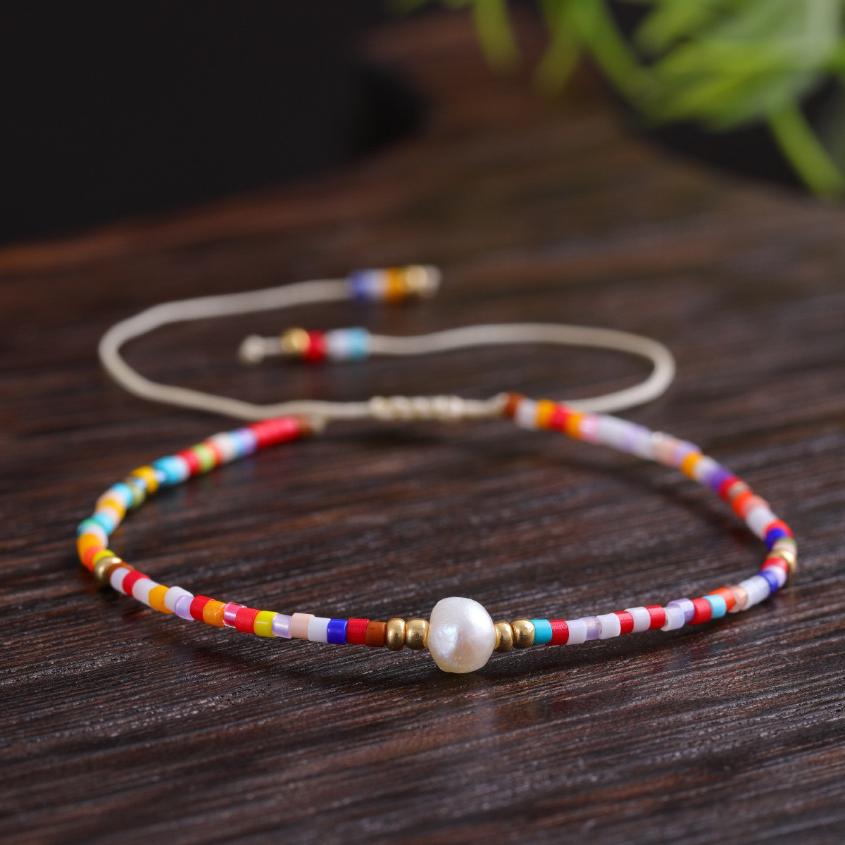 MLGM珍珠彩色米珠串珠编织手链女多巴胺ins叠戴手饰小众手串配饰