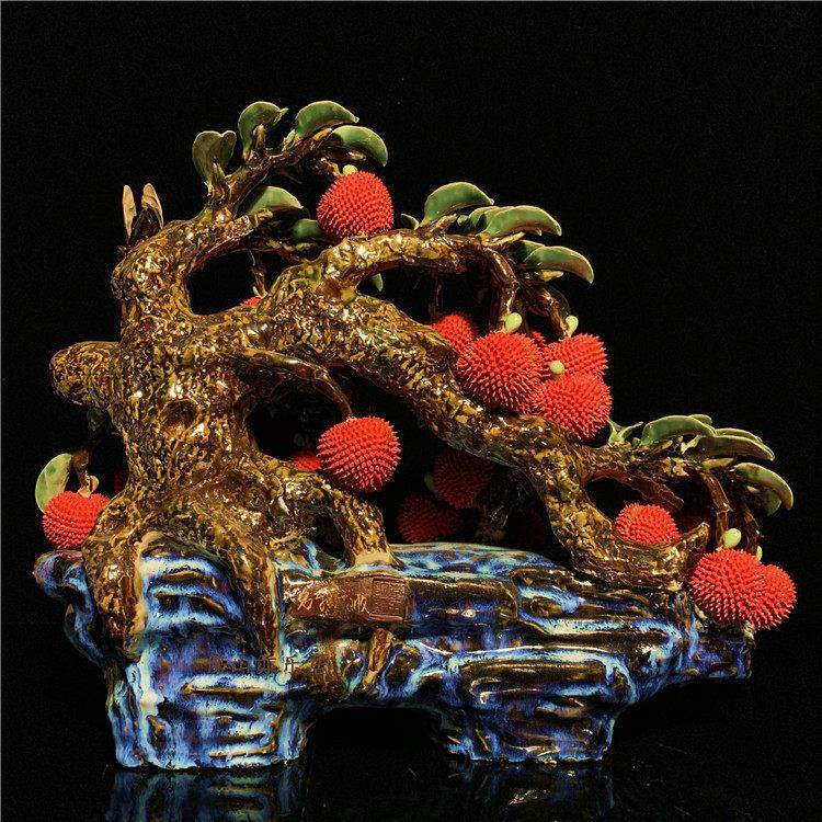石湾公仔陶瓷荔枝摆件玄关客厅电视柜满堂红装饰品乔迁新居送礼品