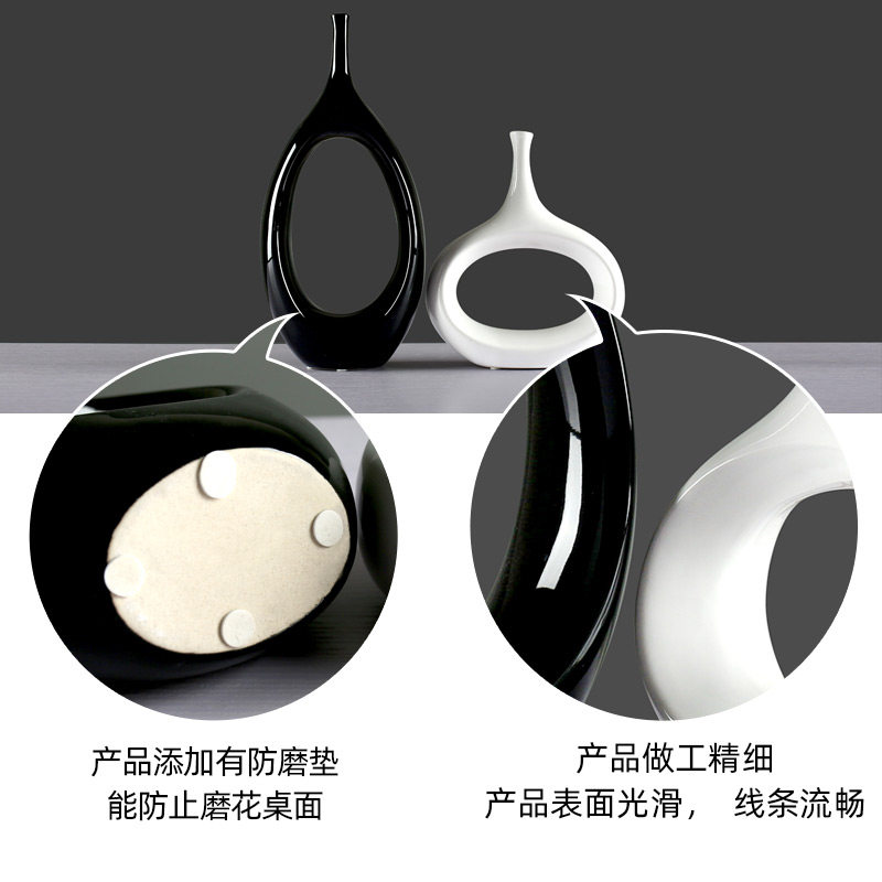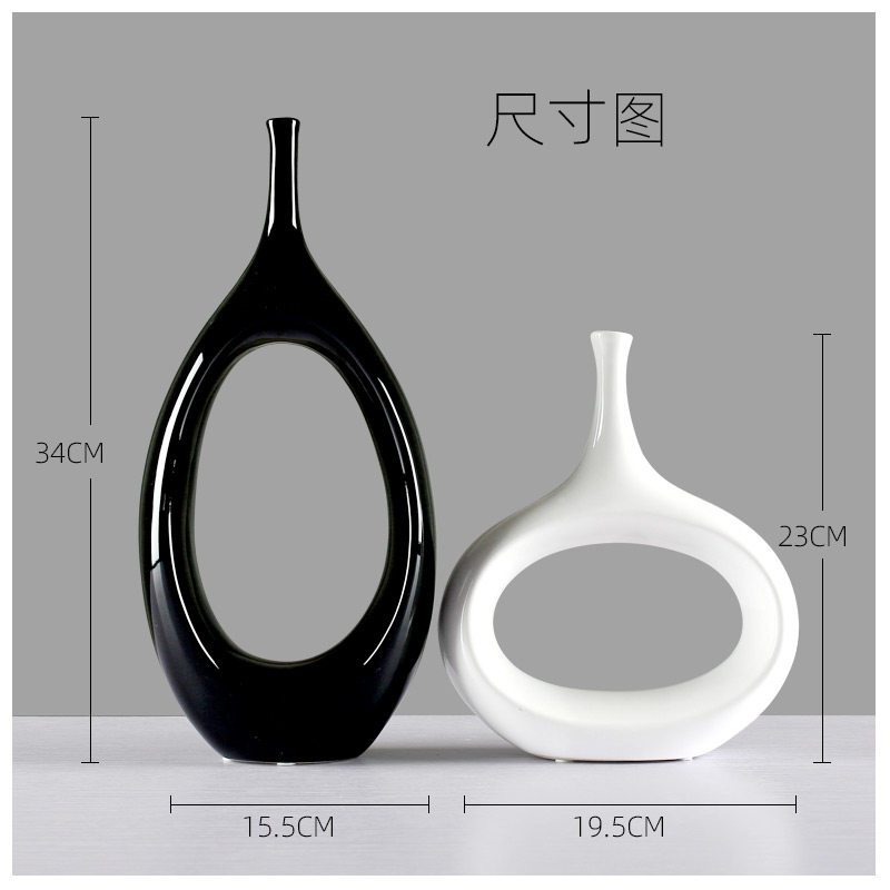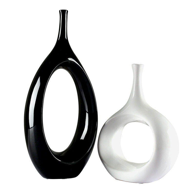 创意陶瓷家居装饰个性摆件工艺品客厅酒柜玄关抽象椭圆花瓶摆件