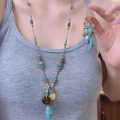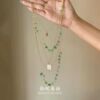 「春霖雨露」复古绿色碎石多层流苏项链小众设计感显白叠戴锁骨链