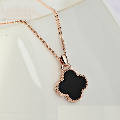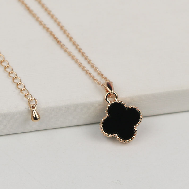 日韩经典小众简约全新包邮百搭流行黑色幸运草项链送女友锁骨