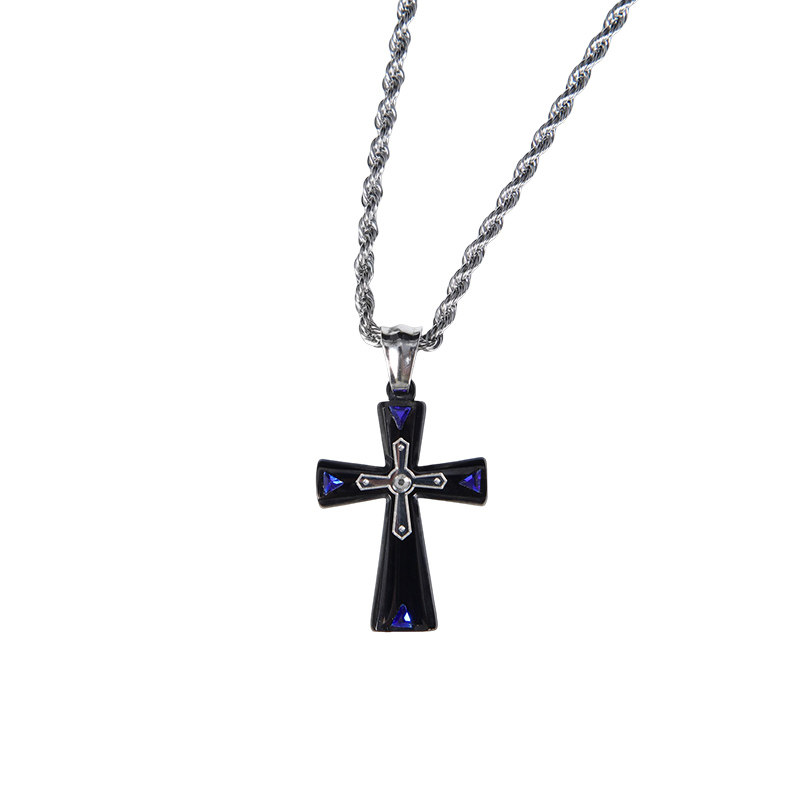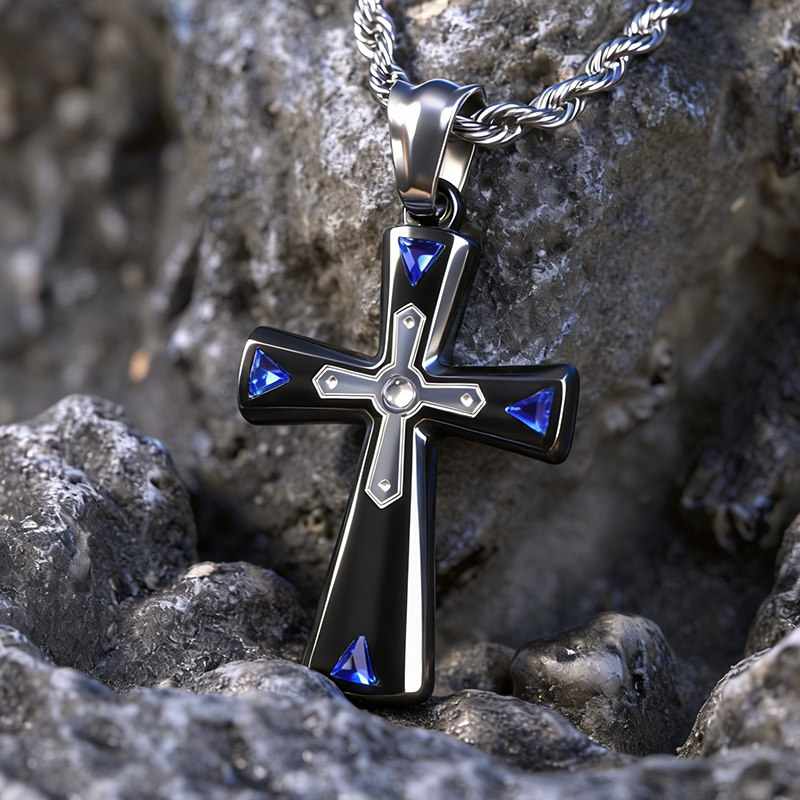 黑色镶钻十字架项链男女通用简约设计感小众轻奢高级感约创意项链