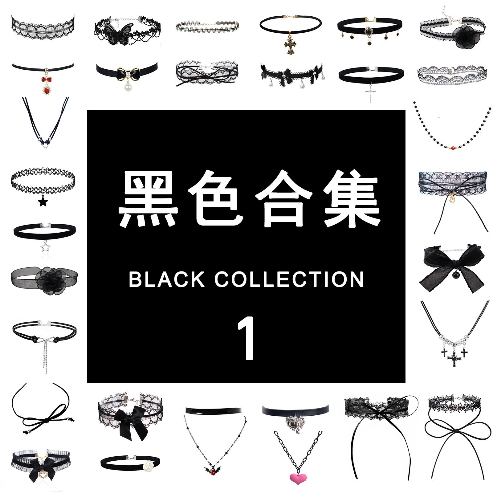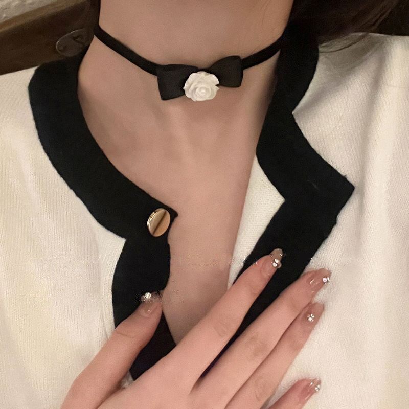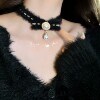 甜酷辣妹蕾丝项链叠戴锁骨链设计感颈链黑色简约铃铛冷淡风配饰