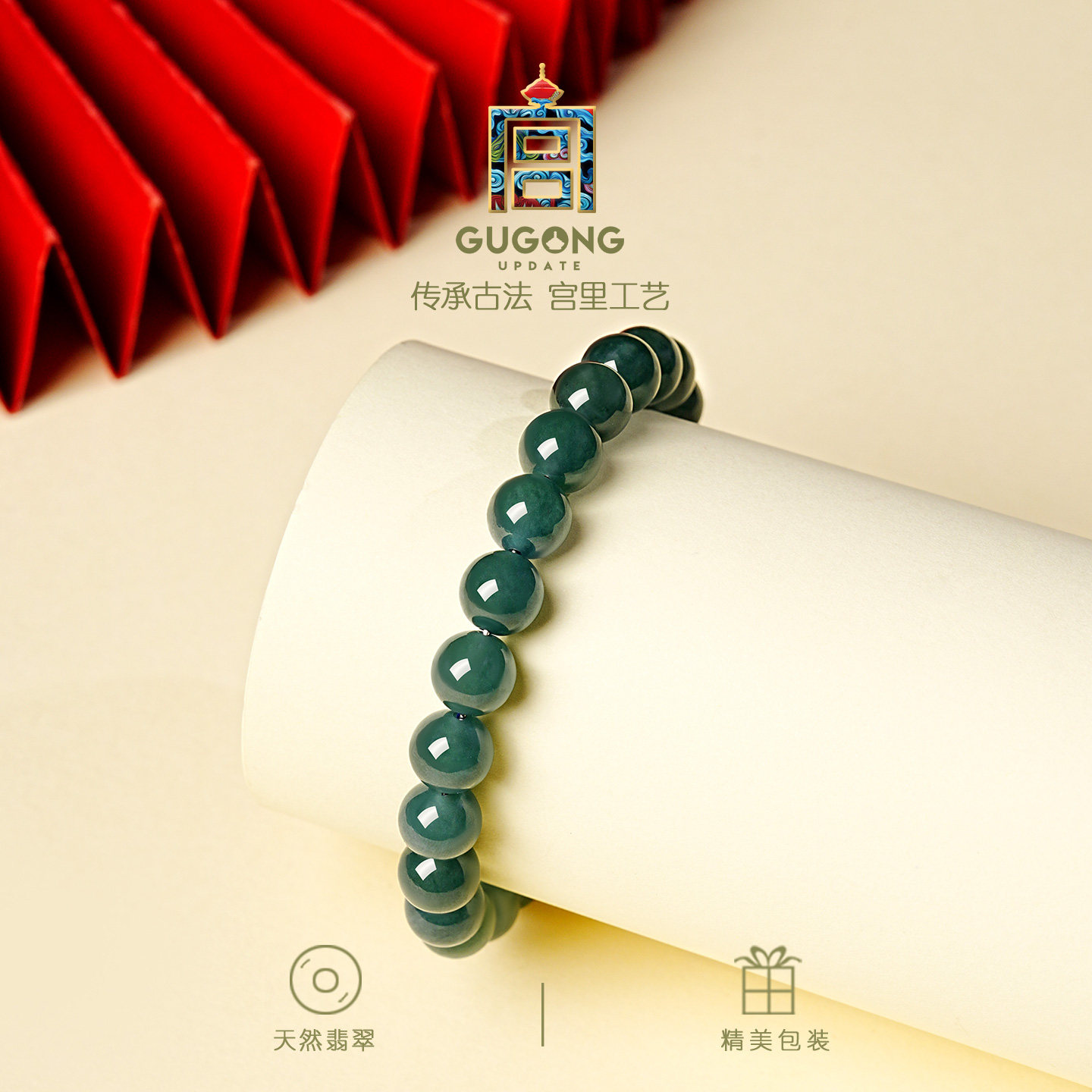 宫里上新翡翠手链女款正品天然玉石手串绿色串珠生日礼物送妈妈