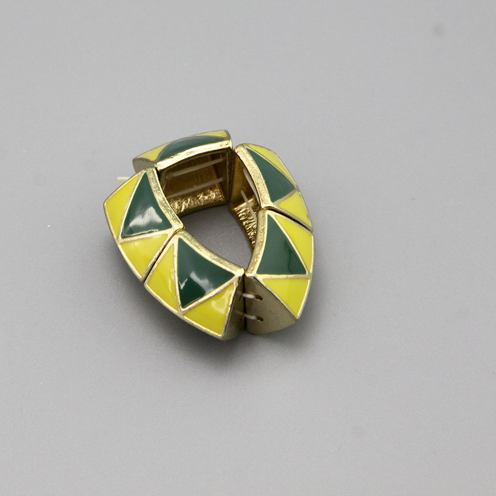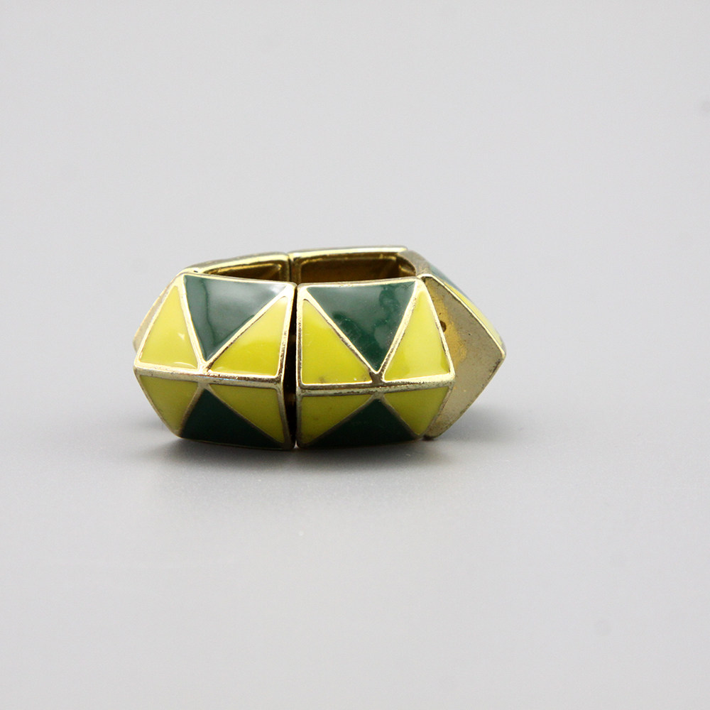 V小合社复古vintage彩釉绿色弹力戒指指环孤品