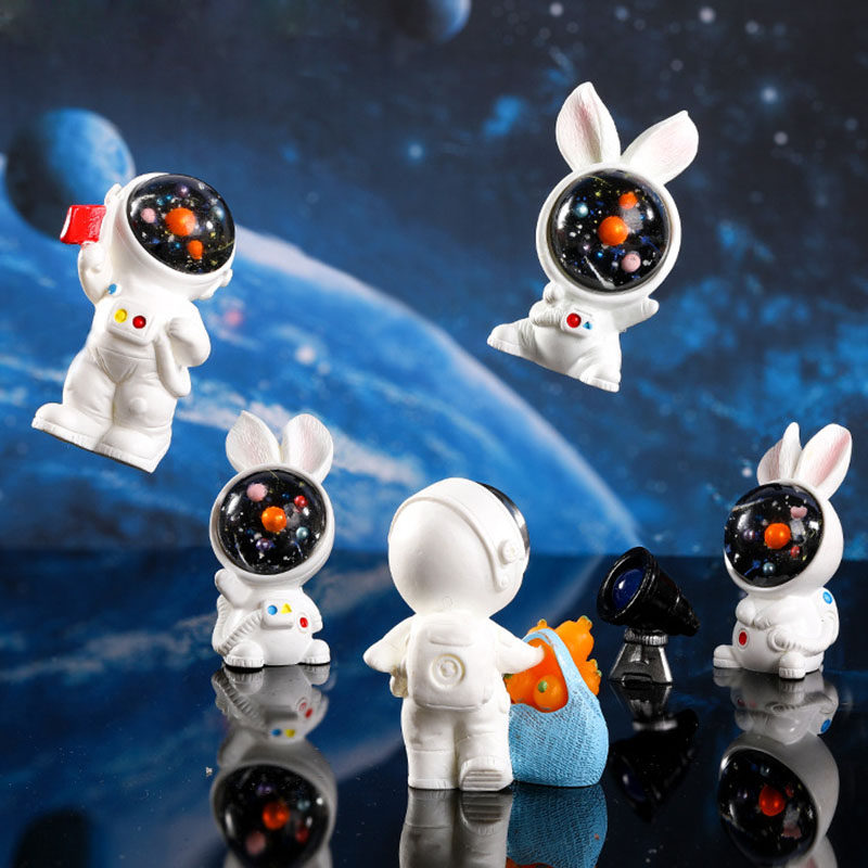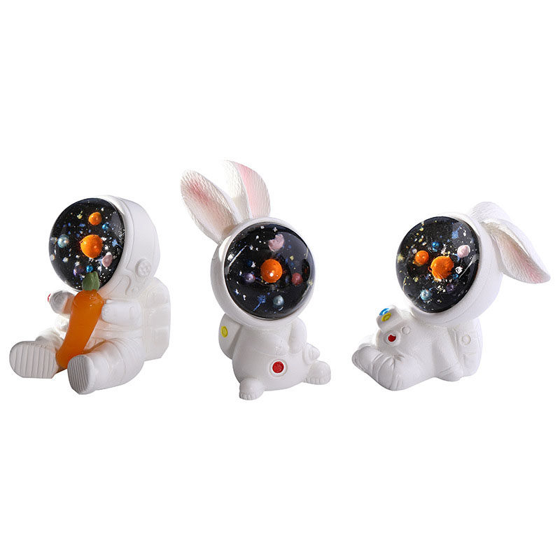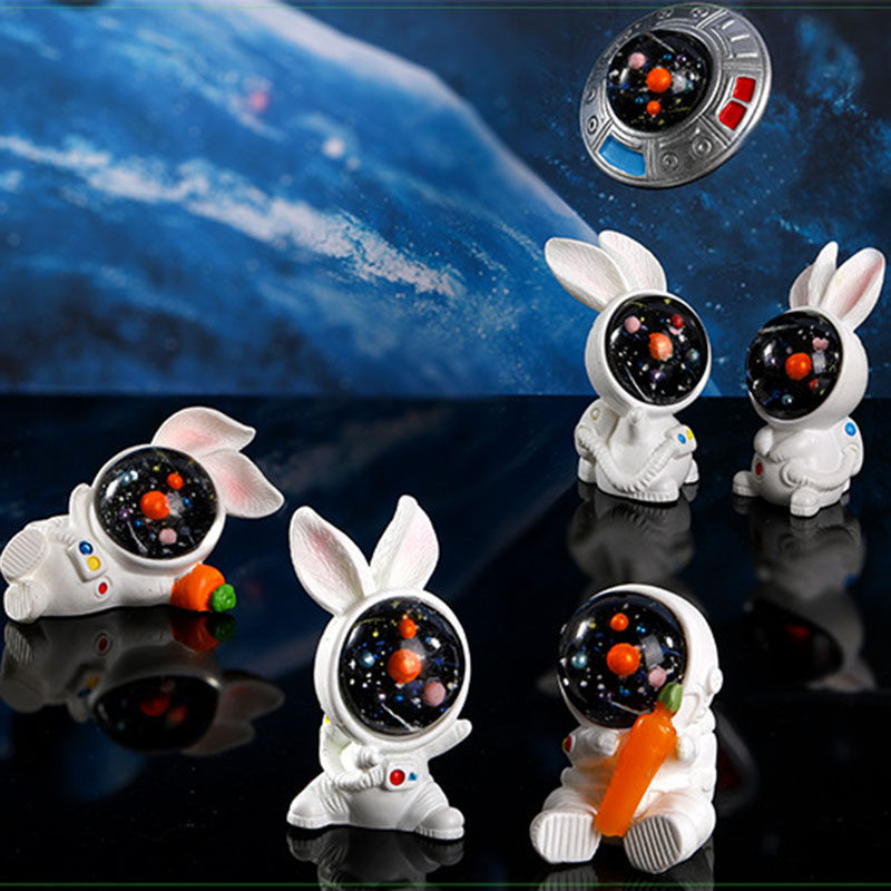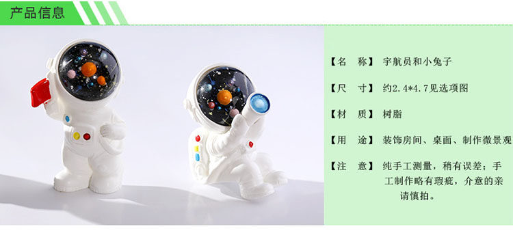 微景观可爱小兔子摆件创意树脂宇航员飞船望远镜火箭飞碟萝卜房子