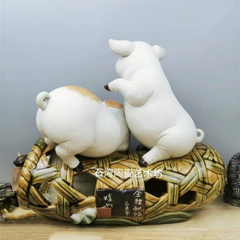 石湾公仔陶瓷生肖猪摆件客厅酒柜中式装饰创意艺术品萌宠动物小猪