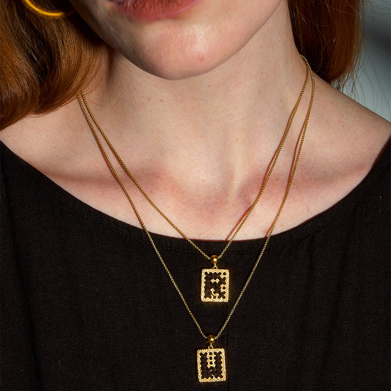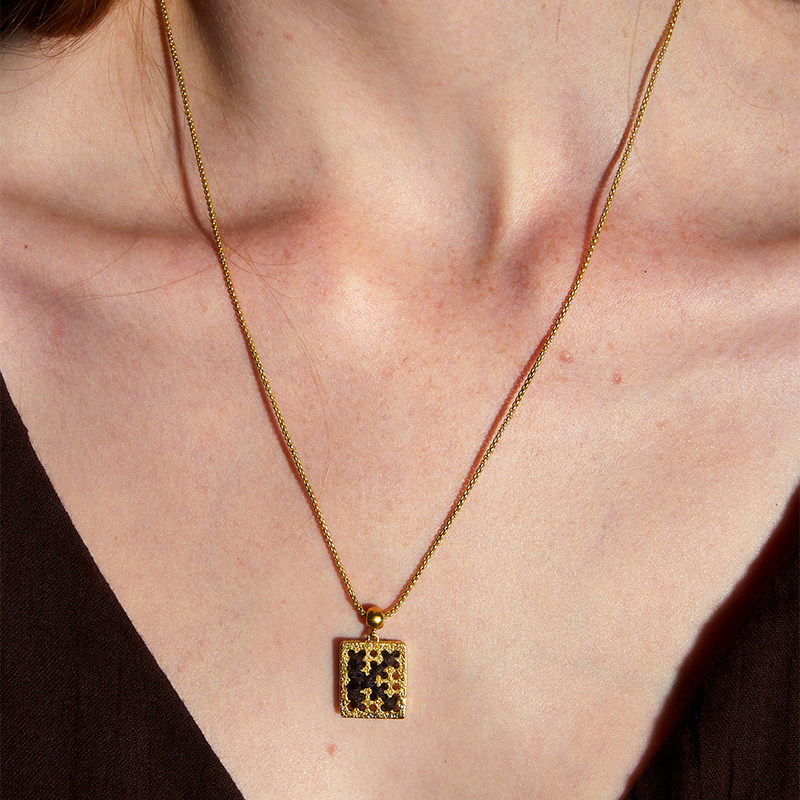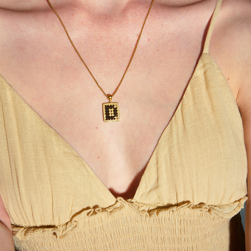 DINN DINN DESIGN金色黑色字母项链新款复古度假风小众设计百搭