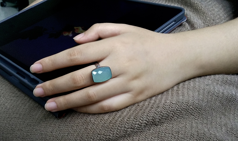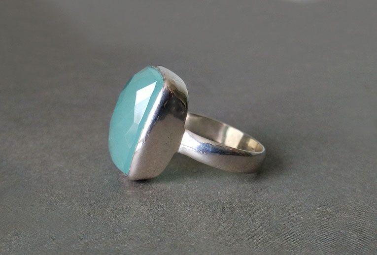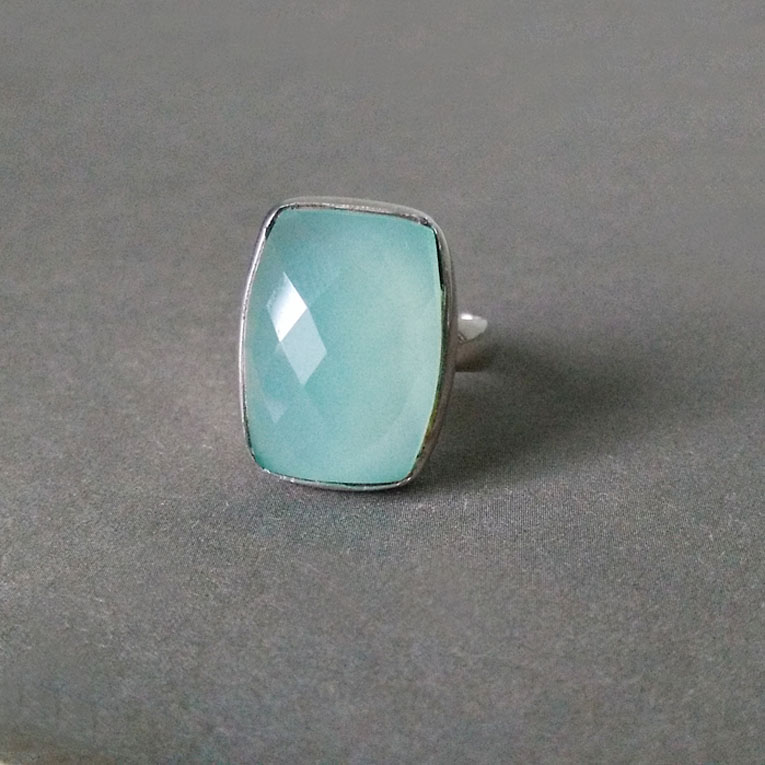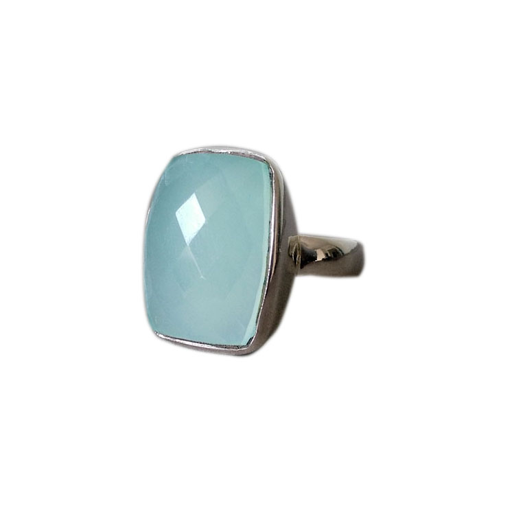 简约大气925纯银手工饰品进口清新雅致切面蓝玉髓长方形银戒指女