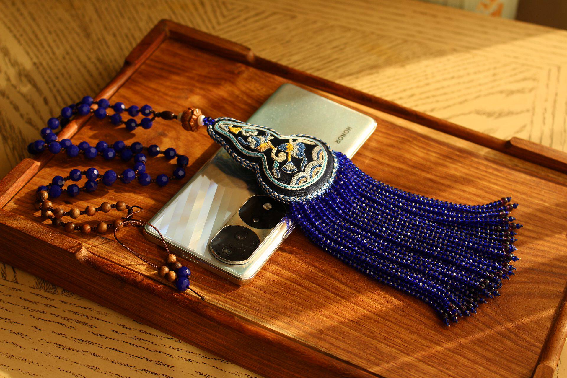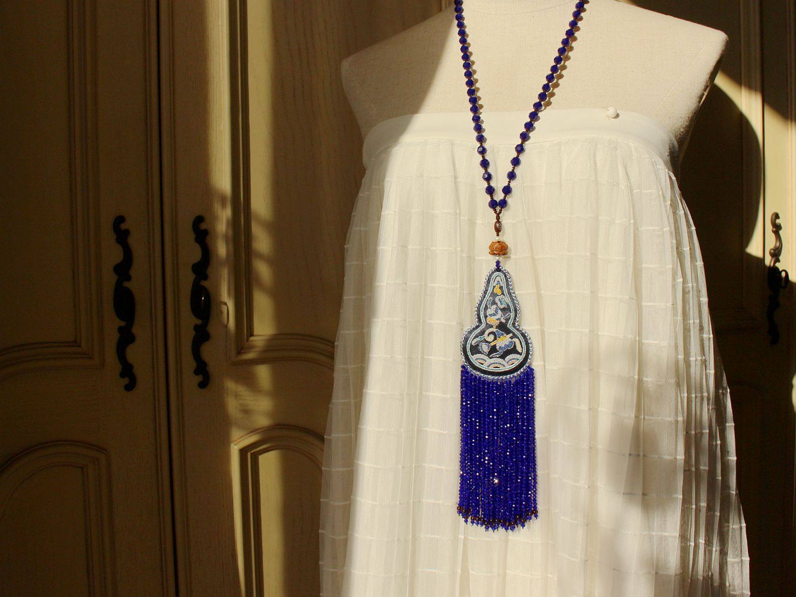 青金之禅双面双面打籽绣极小珠穗流苏吉祥宝蓝色宝葫芦中式长项链