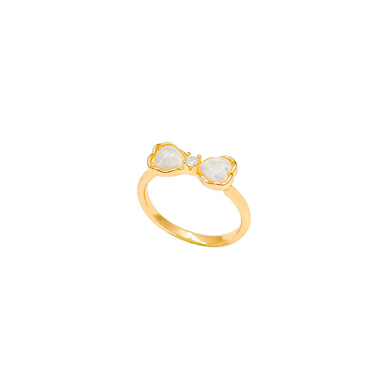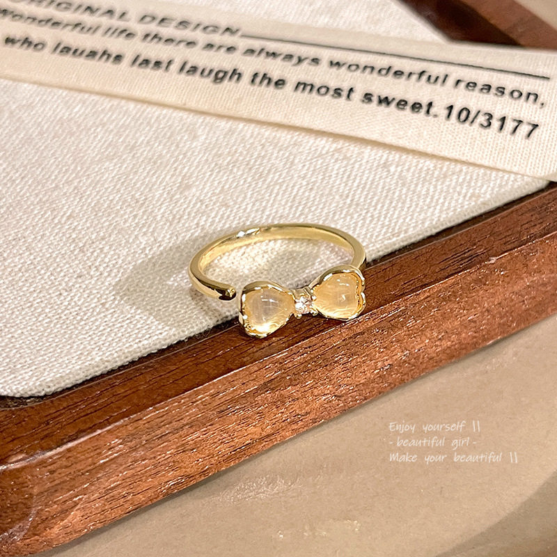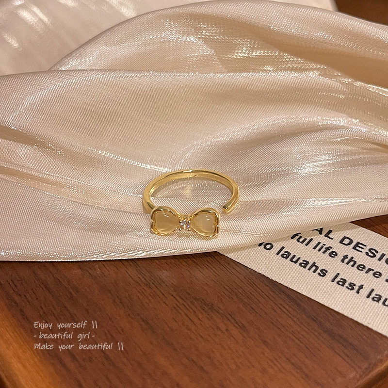 新款韩系甜美猫眼石蝴蝶结戒指小众百搭高级感简约气质指环手饰品