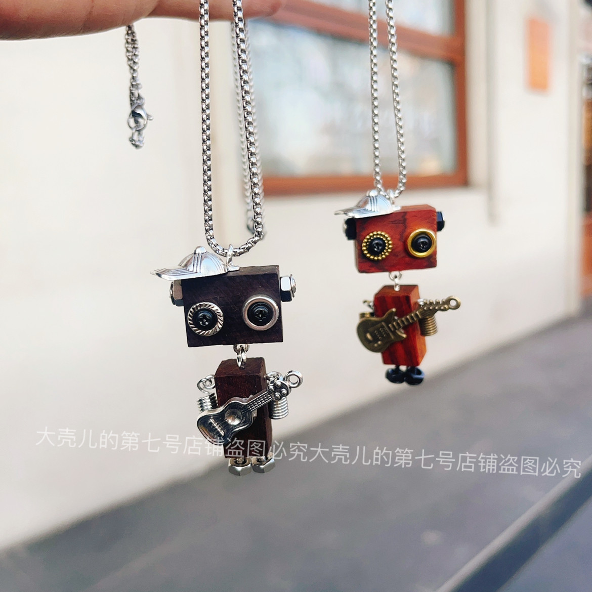 纯手工宋亚轩同款回春丹摇滚吉他朋克风格机器人项链钥匙扣挂件潮