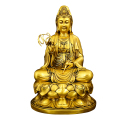 纯黄铜观音菩萨摆件家用佛堂供奉柳枝观音坐莲花净瓶观世音菩萨像