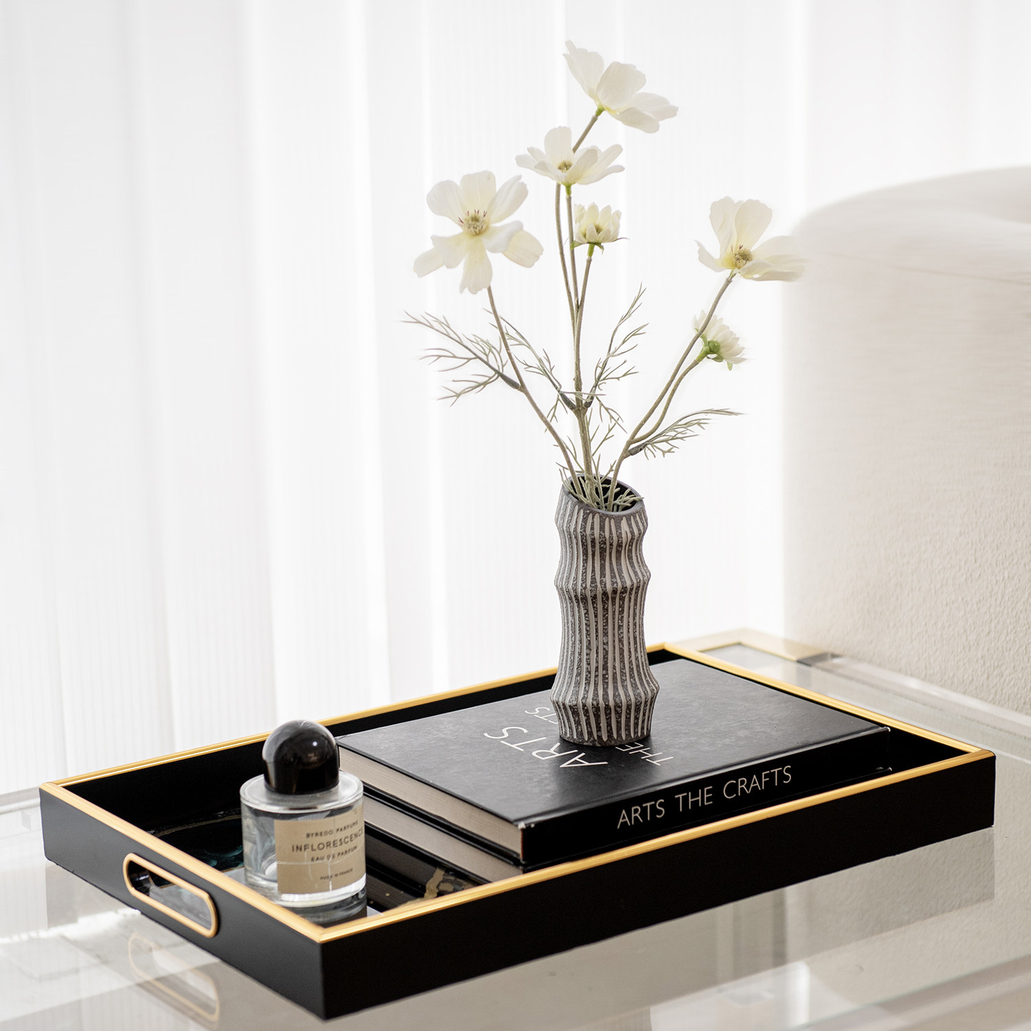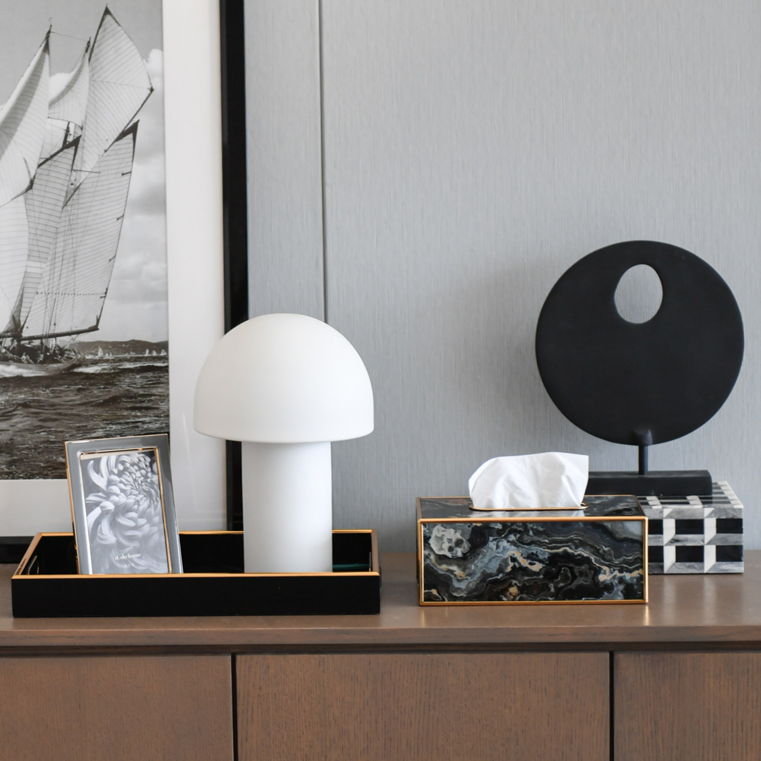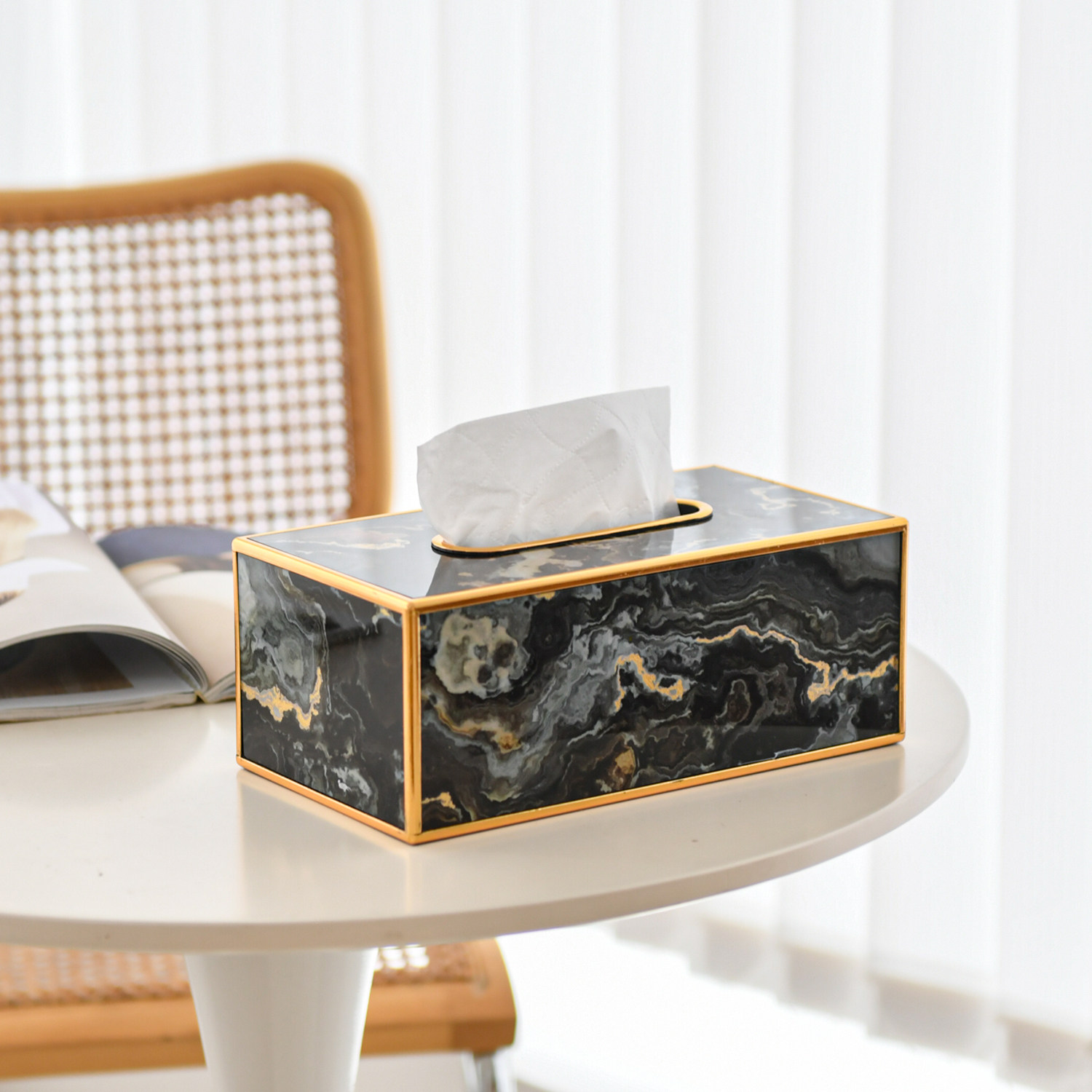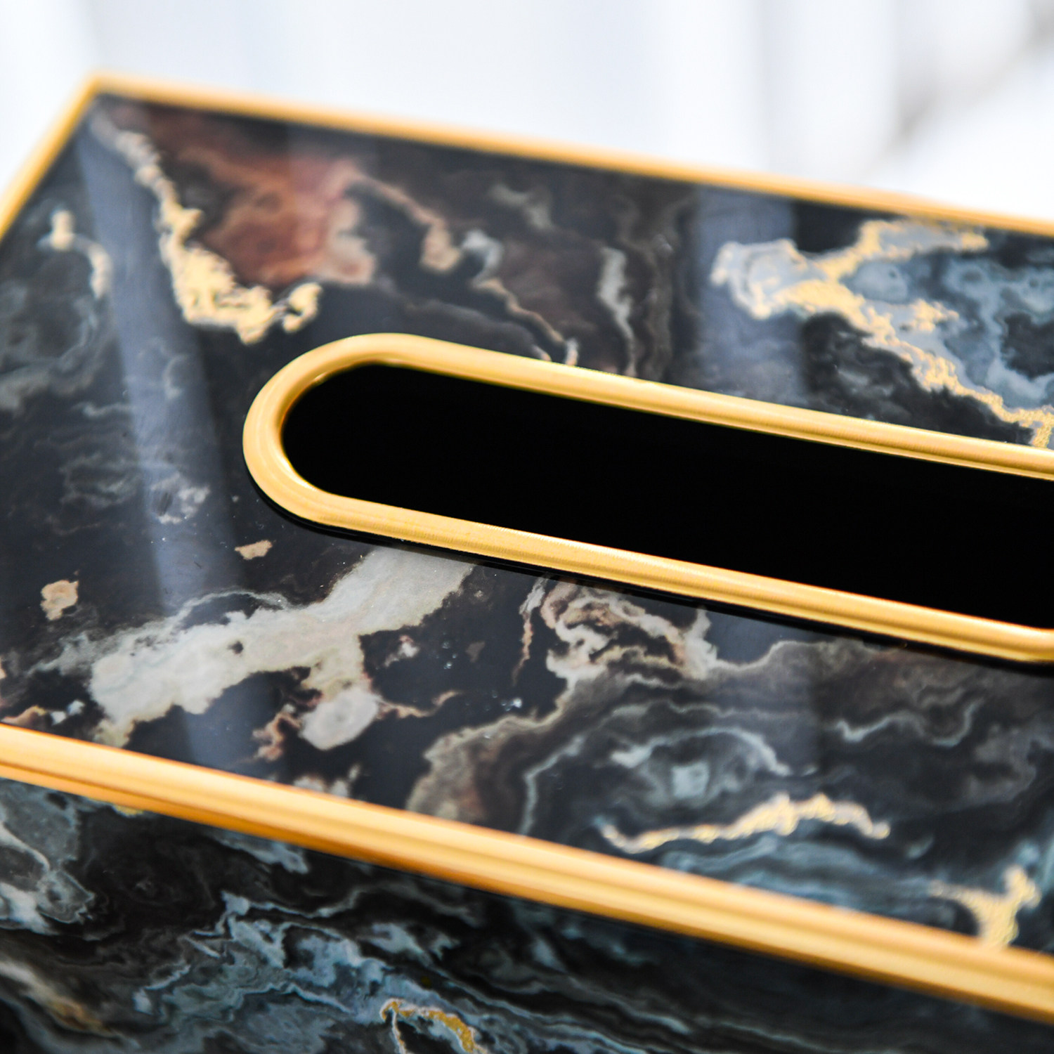 进口黑色纸巾盒托盘摆件现代轻奢大理石纹收纳盒客厅卧室长收纳盘