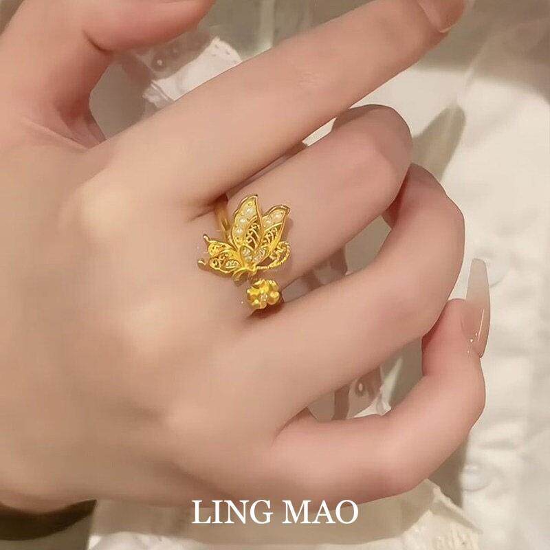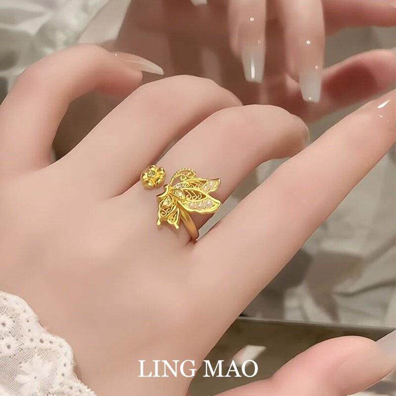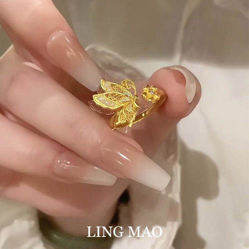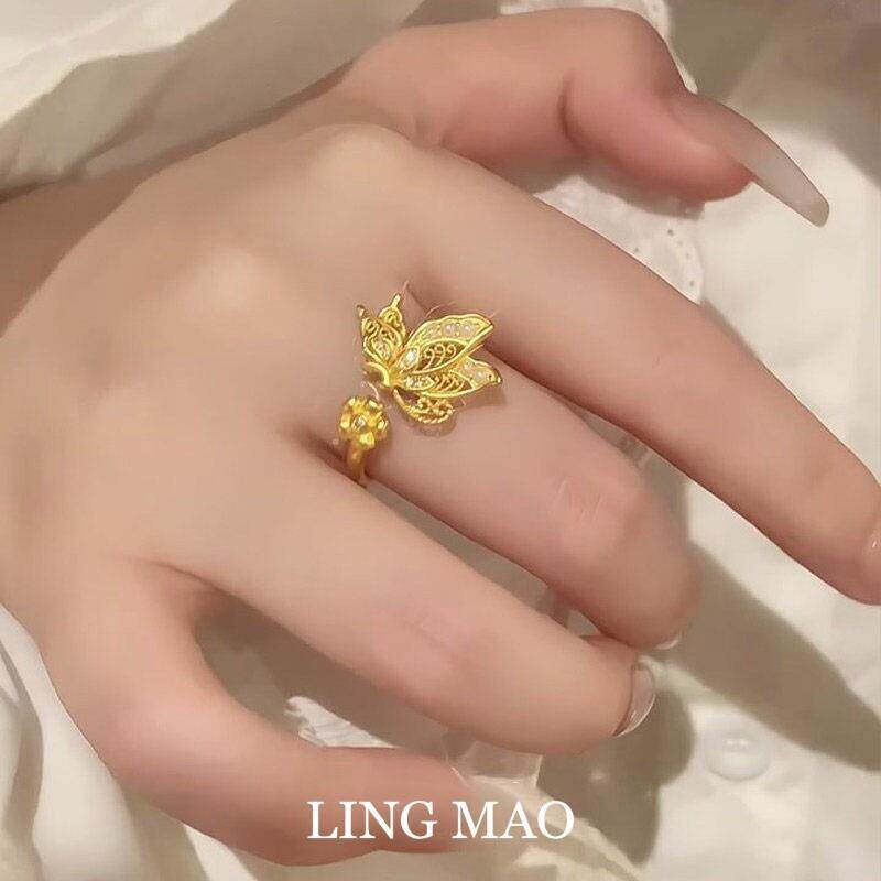 新中式金色镂空蝴蝶戒指女轻奢高级感精致小众设计气质开口指环
