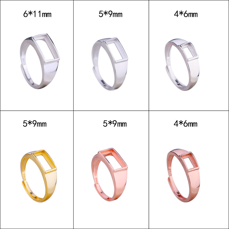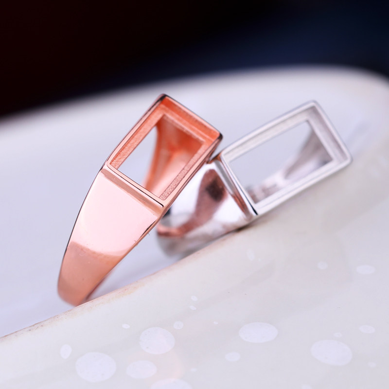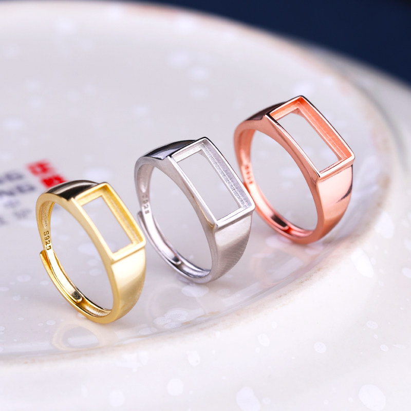 S925纯银戒指空托男女镶嵌绿松石蜜蜡翡翠光面方戒托4*6 5*9 6*11