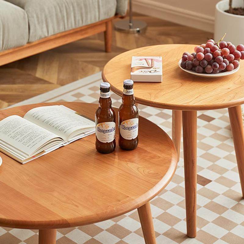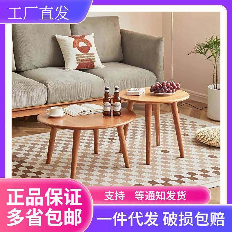 北欧全实木茶几组合圆形小户型日式简约客厅樱桃木边几角几小茶桌