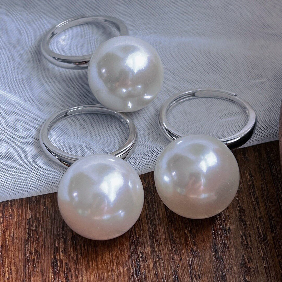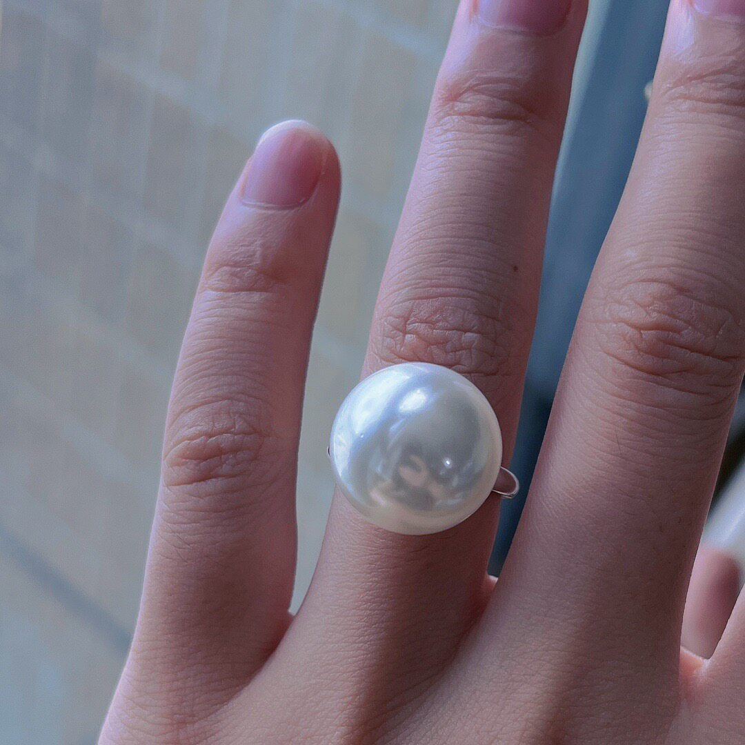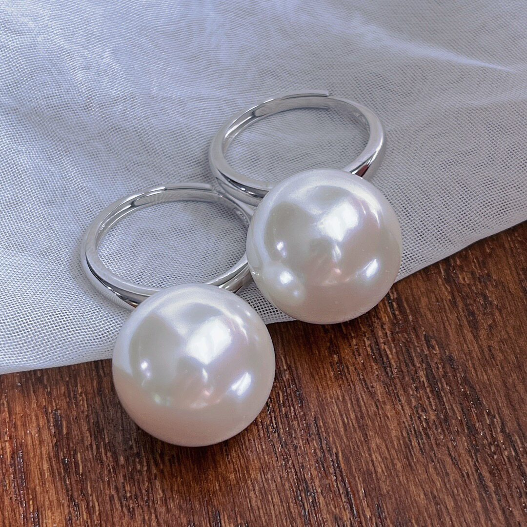 温柔风16mm大珍珠戒指女 轻奢百搭气质小众设计食指戒指环爆款