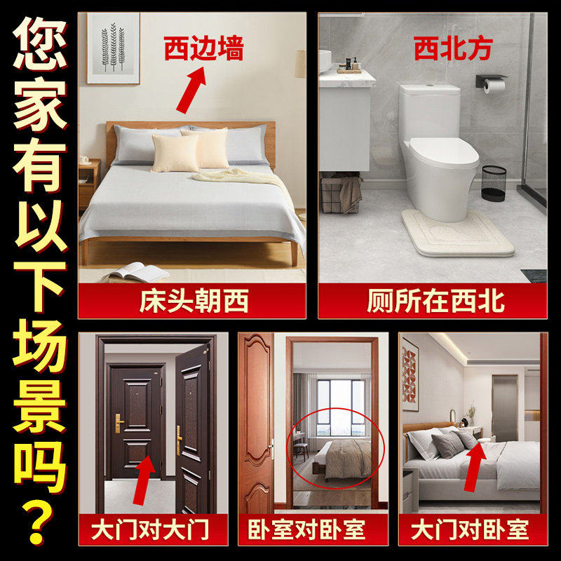 专解床头朝西解决门对门安忍水摆件床头向西化解五帝钱挂件隐形贴